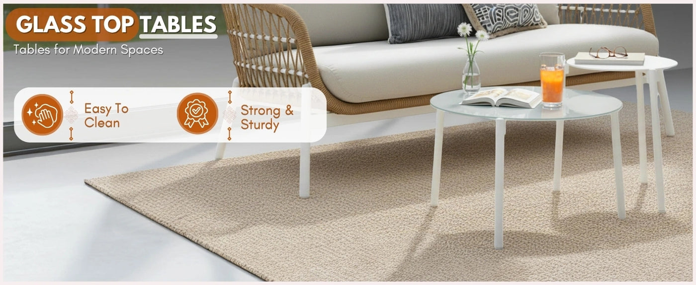 - Glass-Top Center & Side Table: Sleek and stable surface ideal for drinks, snacks, or décor, easy to clean and scratch-resistant.