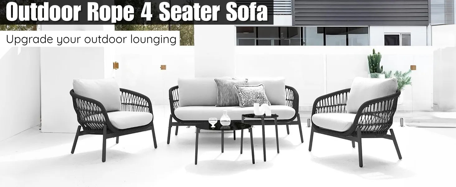 Outdoor 4 Seater Rope Conversation Sofa Set