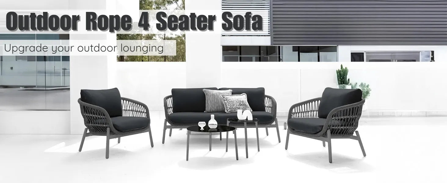 Outdoor 4 Seater Rope Conversation Sofa Set
