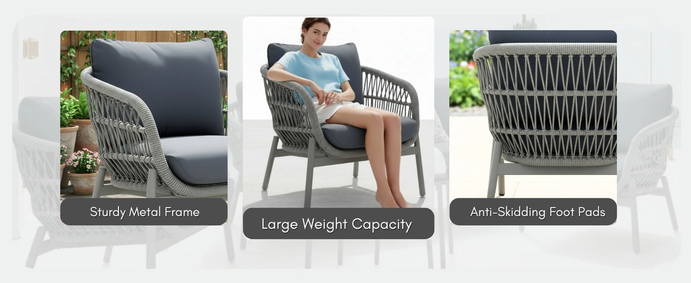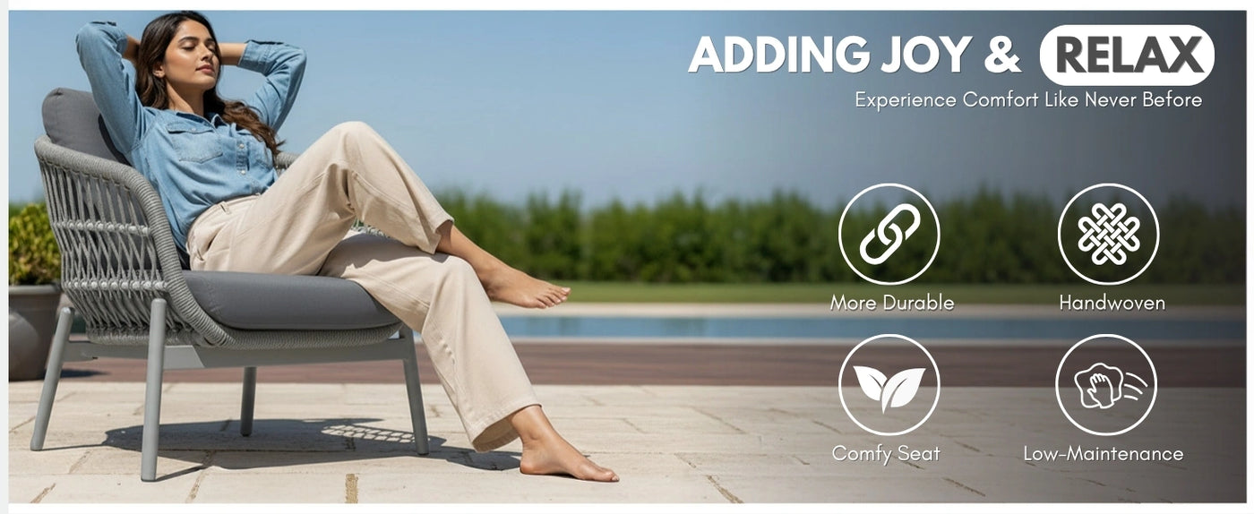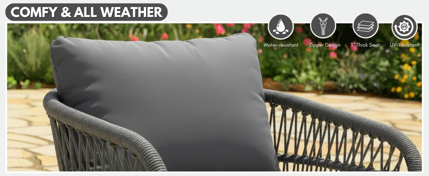 - Comfortable All-Weather Cushions : Thick, water-resistant cushions with breathable fabric covers ensure plush seating and year-round comfort.