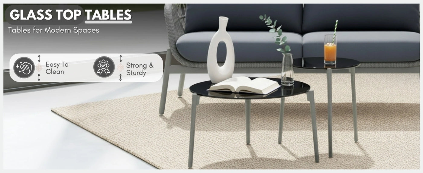 - Glass-Top Center & Side Table: Sleek and stable surface ideal for drinks, snacks, or décor, easy to clean and scratch-resistant.