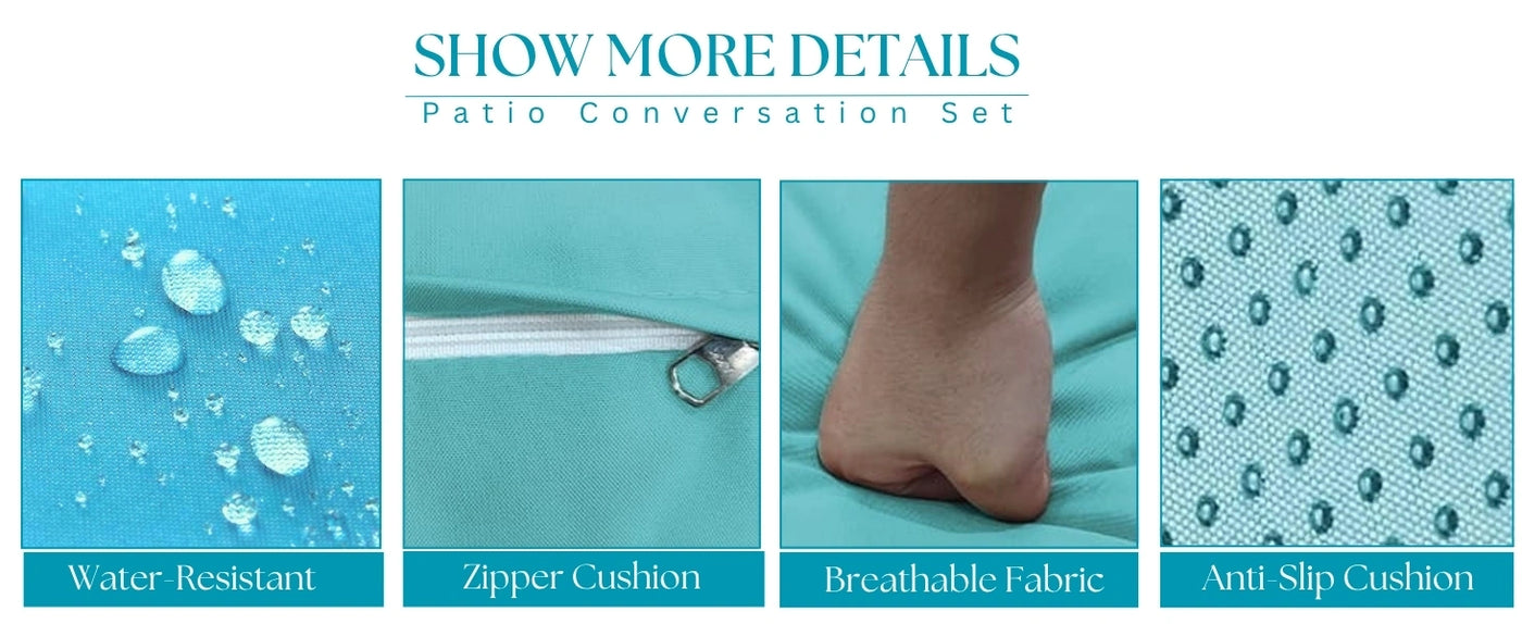 - Sturdy Powder-Coated Metal Frame : Built with a heavy-duty, rust-resistant metal frame that ensures excellent stability and strength, this set maintains its shape and support even with frequent use.
