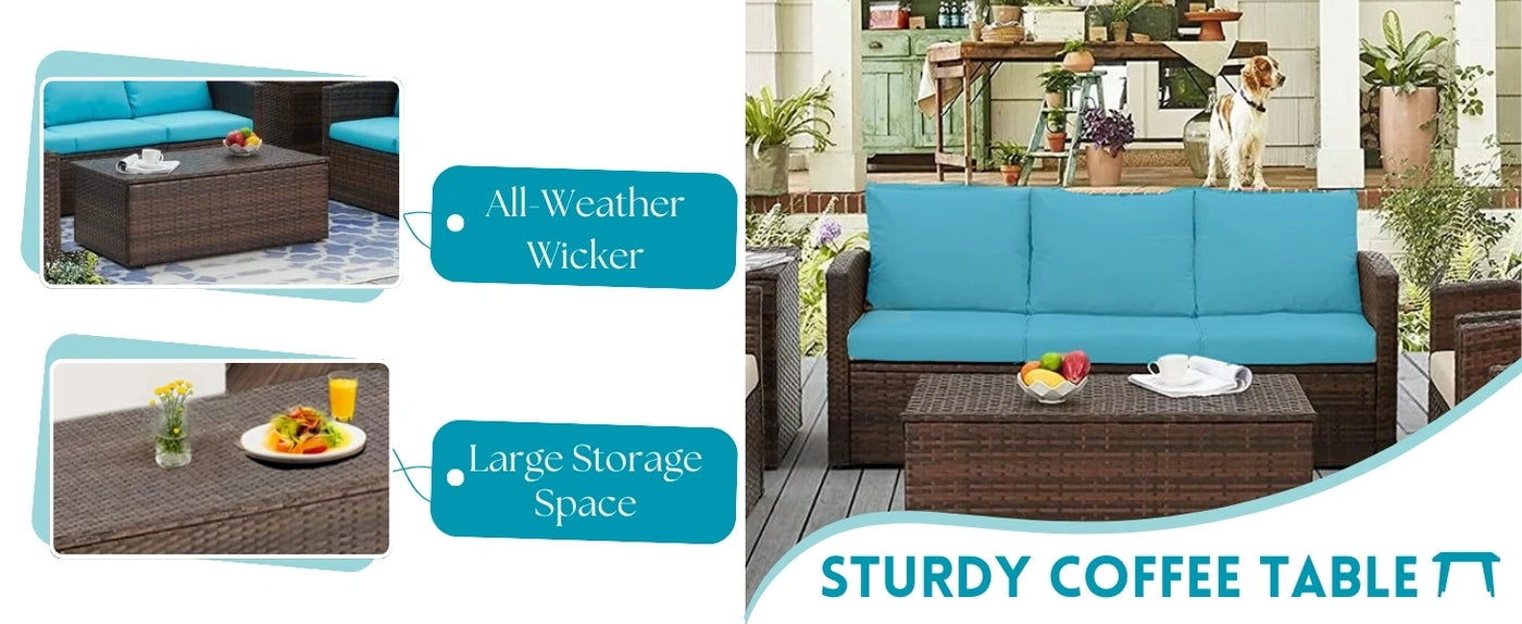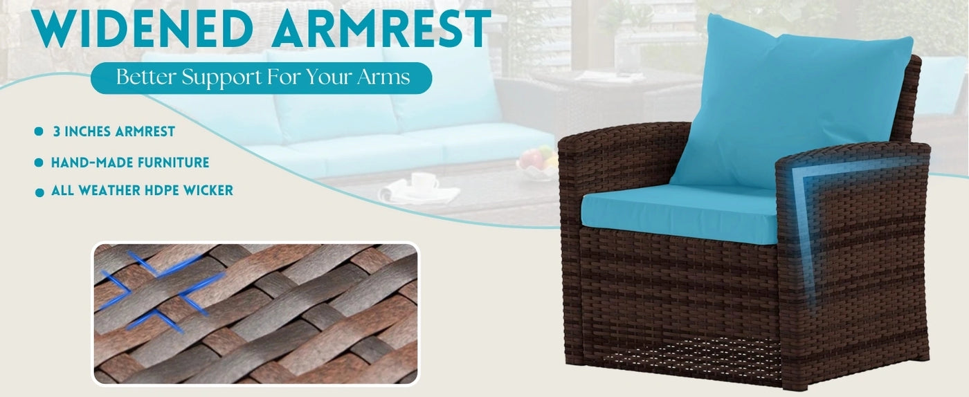 - Modern Aesthetic with Earthy Tones : The dark brown wicker contrasts beautifully with sky-blue cushions, blending effortlessly with natural or contemporary décor themes.