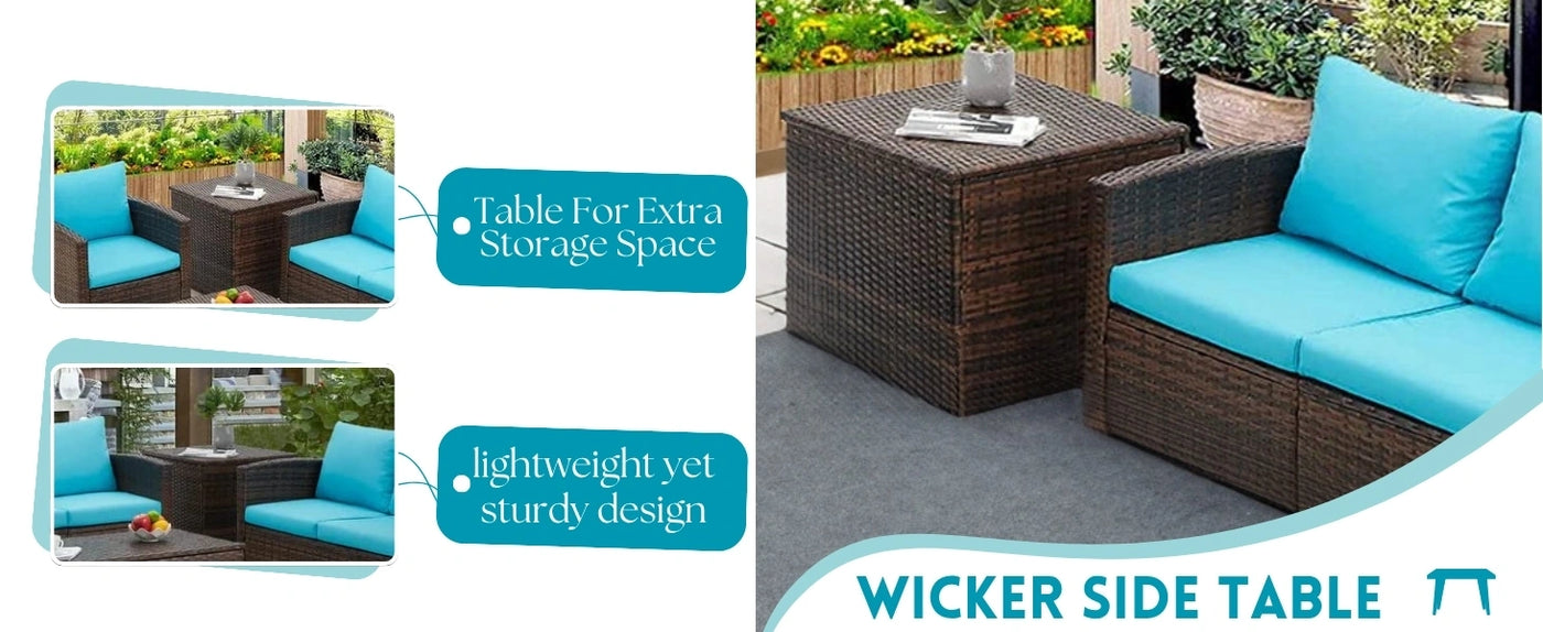 - Multi-Functional Center & Side Tables : Includes a stylish wicker-top center table and a convenient side table perfect for serving snacks, drinks, or decorative accents whether on a balcony, patio, or living room.