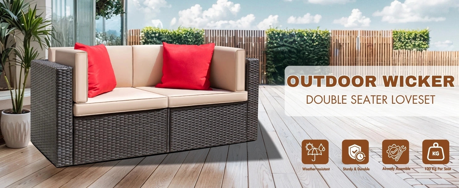 Outdoor All-Weather Rattan Wicker Double Seater Sofa