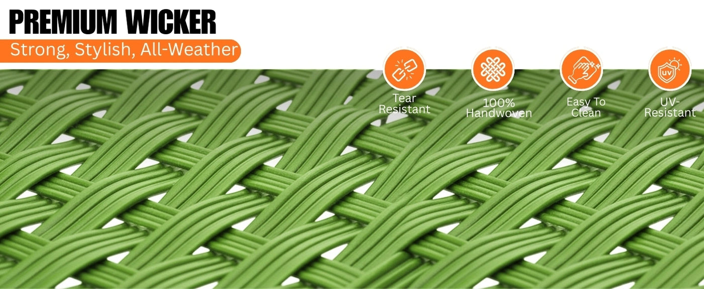- Durable All-Weather Rattan Construction : Crafted with handwoven, high-density HDPE rattan that is UV-resistant, weather proof, and built to withstand outdoor elements for long-term use.