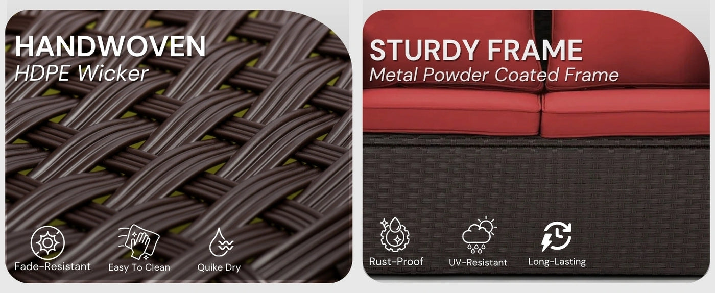 • Premium All-Weather Wicker : Handwoven HDPE rattan resists UV rays, rain, and daily wear for long-lasting outdoor durability.