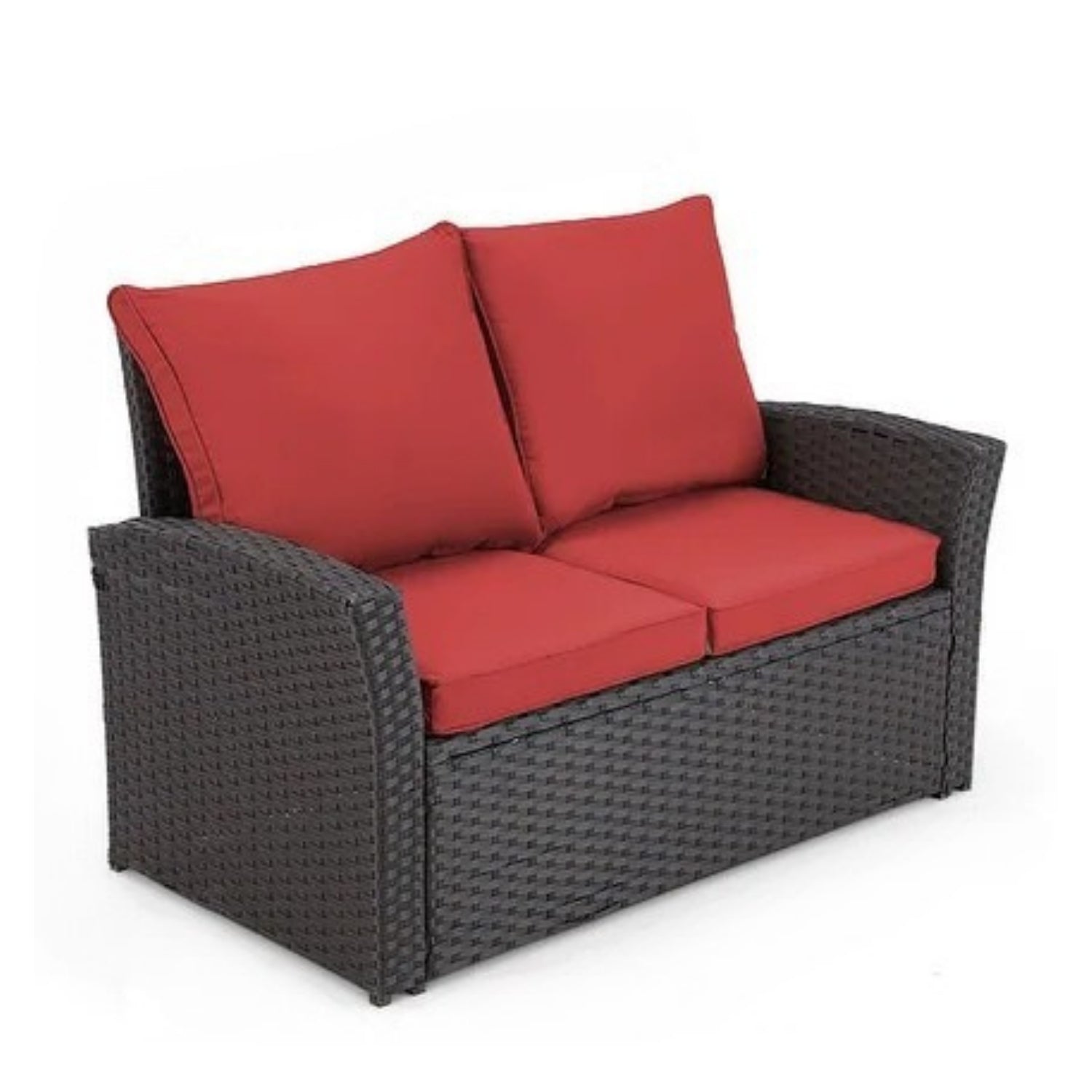Transform your outdoor or indoor space into a haven of style and comfort with this elegant 6-piece sofa set, thoughtfully designed to blend modern aesthetics with functional versatility. The set includes a spacious loveseat sofa, two single-seater chairs, two multipurpose ottomans, and a sleek 2-tier glass-top table, offering both seating and storage solutions. Crafted with a durable powder-coated metal frame, the structure ensures long-lasting strength and stability. The seating is handwoven with premium all-weather wicker/rattan, resistant to fading, cracking, and wear, making it ideal for year-round use. The plush water-resistant cushions with removable, washable covers provide superior comfort and hassle-free maintenance. The ottomans serve dual purposes as footrests for added relaxation or as additional seating when needed while the 2-tier glass-top table s add convenience, offering a stylish surface for drinks, snacks, or décor, along with an extra shelf for books or accessories. Designed with an ergonomic silhouette, breathable materials, and soft cushioning, this set ensures relaxation without compromising on durability or elegance.