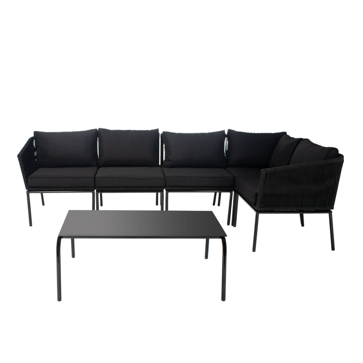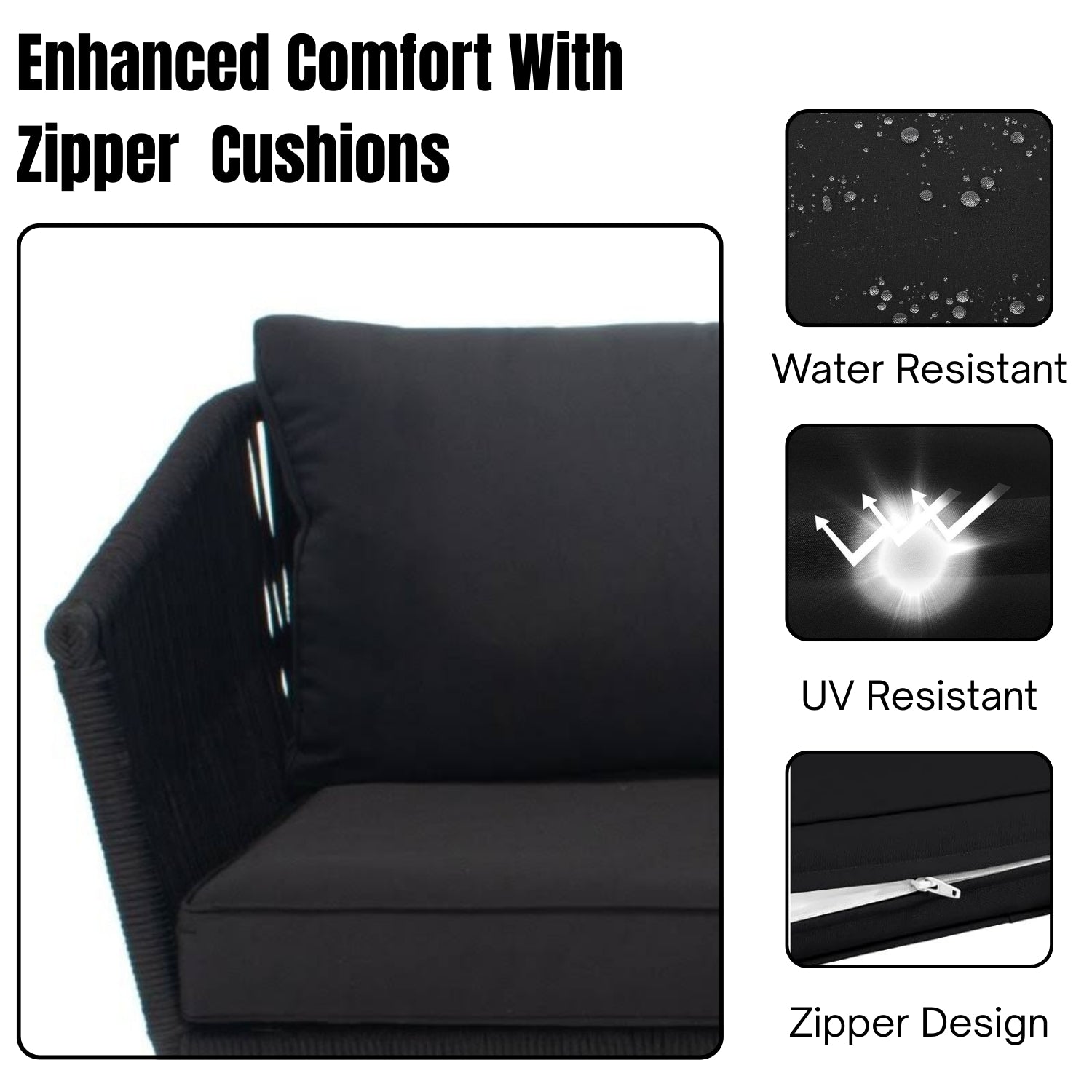 Outdoor Black Rope L-Shape All Weather Sectional Sofa Set