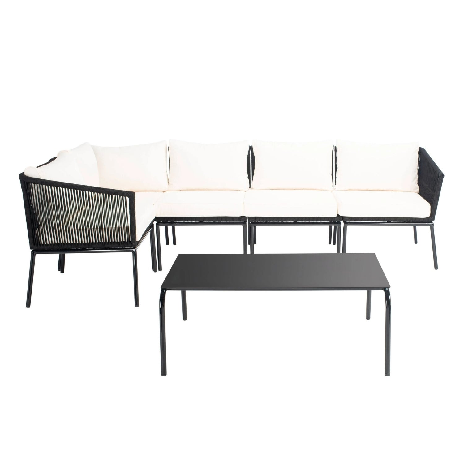 Outdoor Black Rope L-Shape All Weather Sectional Sofa Set