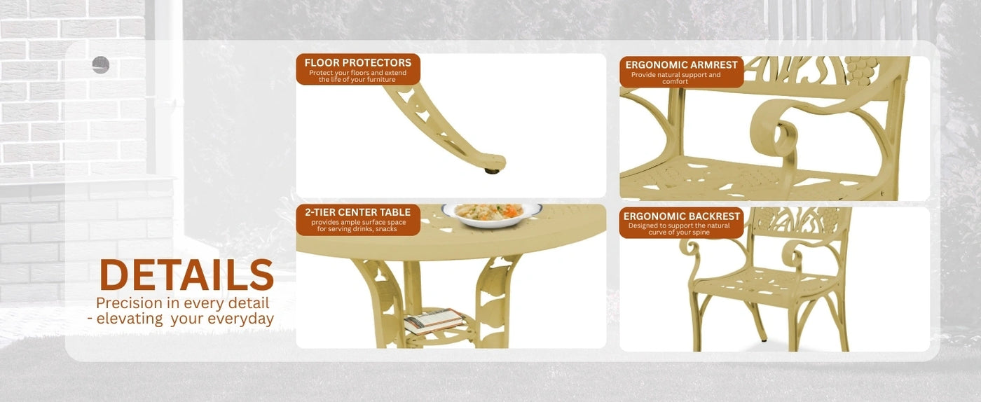 - Durable Cast Aluminium Construction : Rust-proof, fade-resistant, and weatherproof, ensuring years of outdoor use.