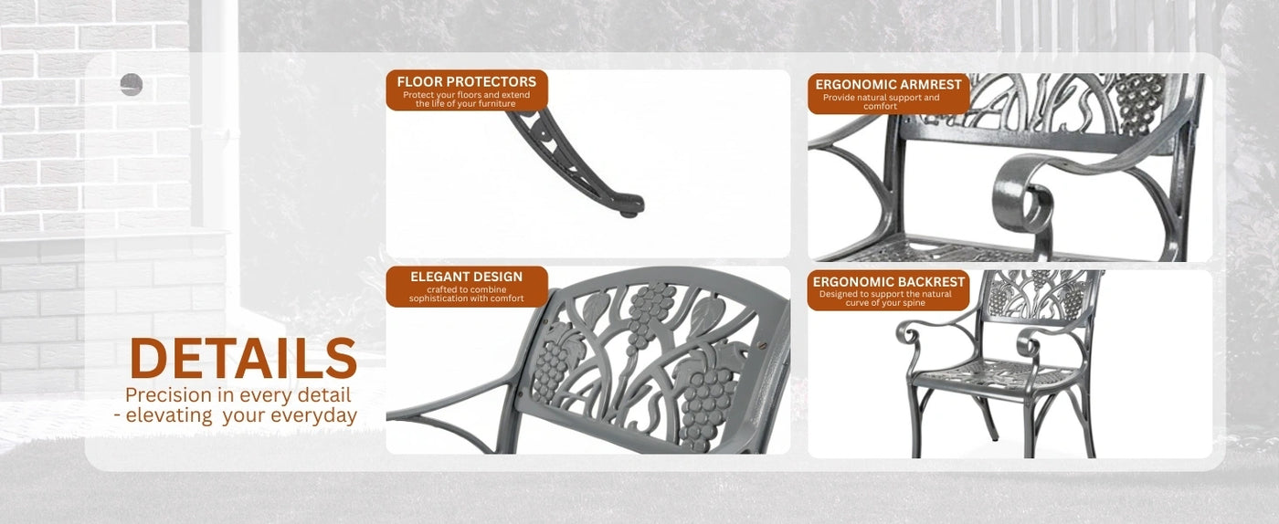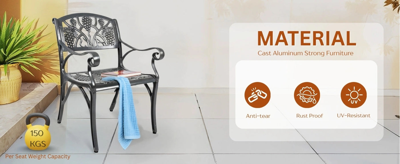 - Durable Cast Aluminium Construction : Crafted with premium-grade cast aluminium that is rustproof, weather-resistant, and designed to last through all seasons.