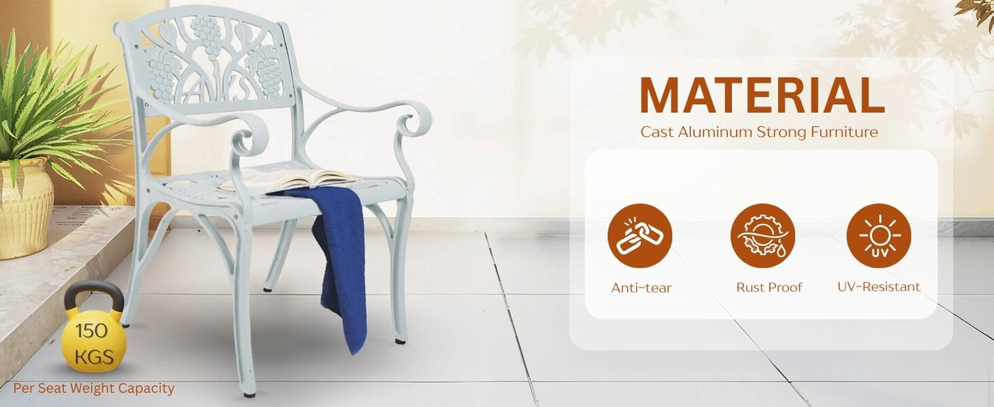 - Durable Construction : Crafted from premium cast aluminum, this outdoor furniture set is UV-proof, water-resistant, and rust-proof, ensuring long-lasting durability in all-weather conditions without fading or corroding.