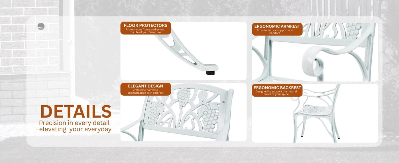 - Elegant & Low-Maintenance : Finished in a stylish white coating, this set combines timeless elegance with easy cleaning; simply wipe down to maintain its fresh look season after season.