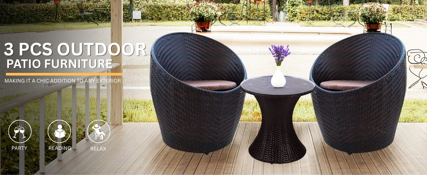Outdoor Rattan Wicker 3-Piece Conversation Set
