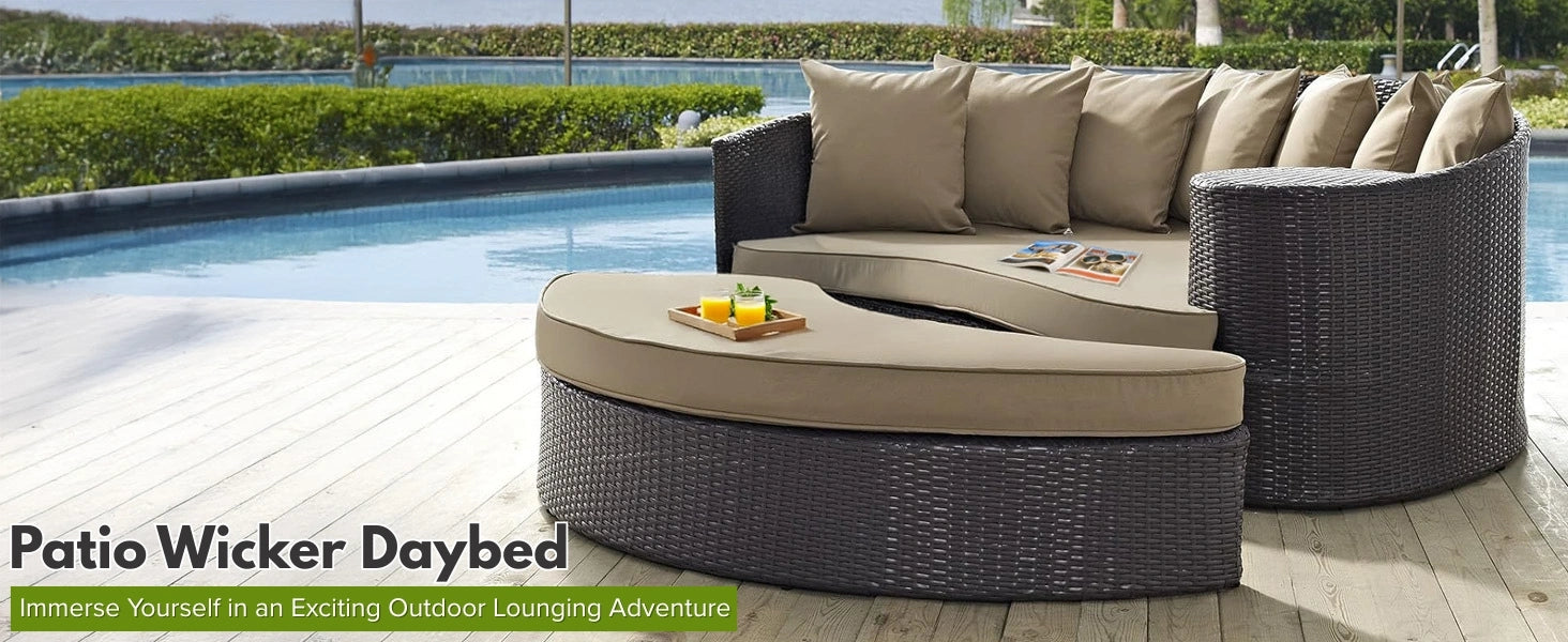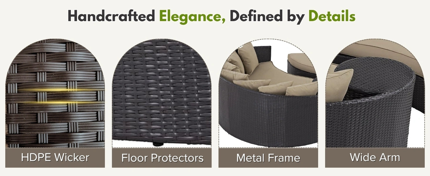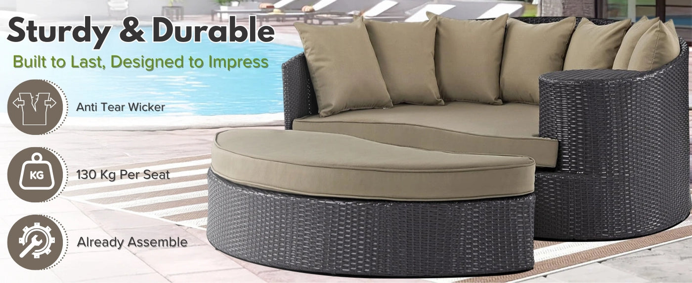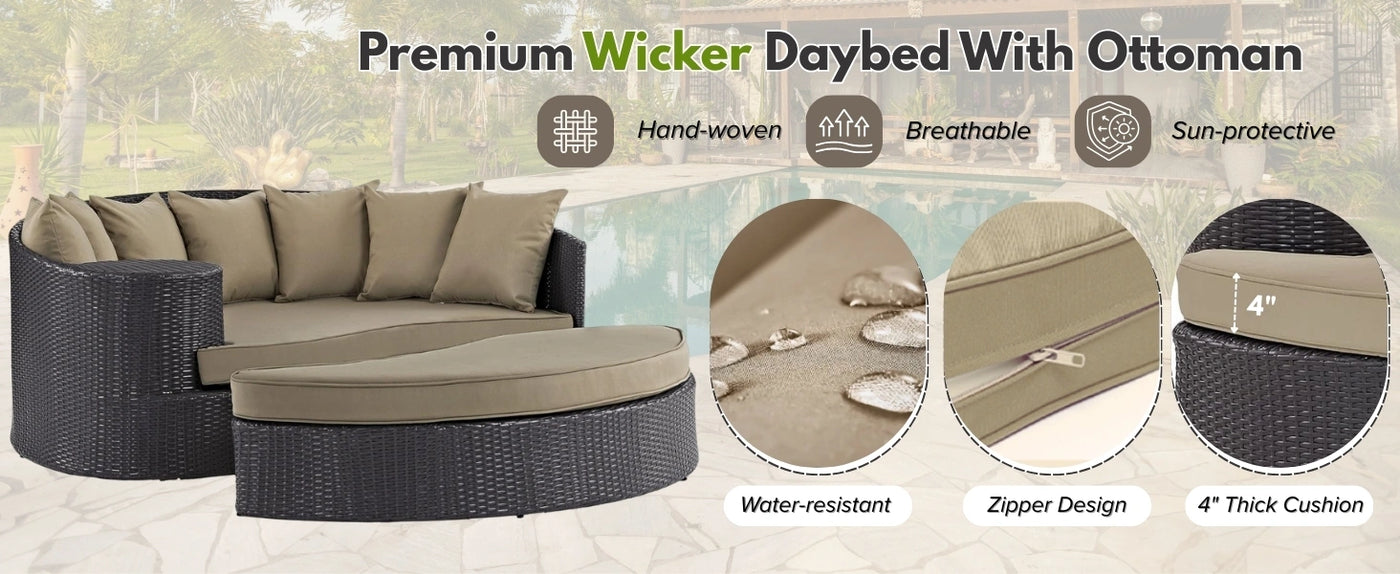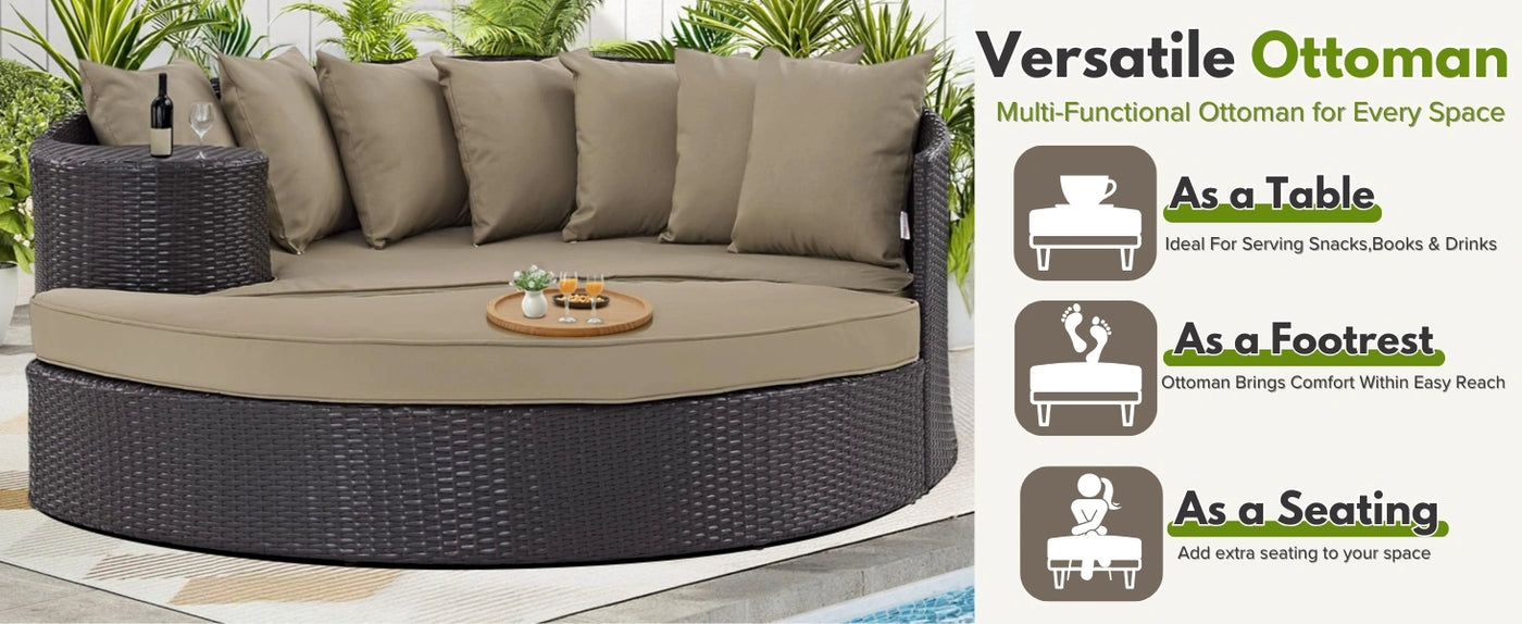 Outdoor Rattan Wicker Daybed (Dark Brown & Beige)