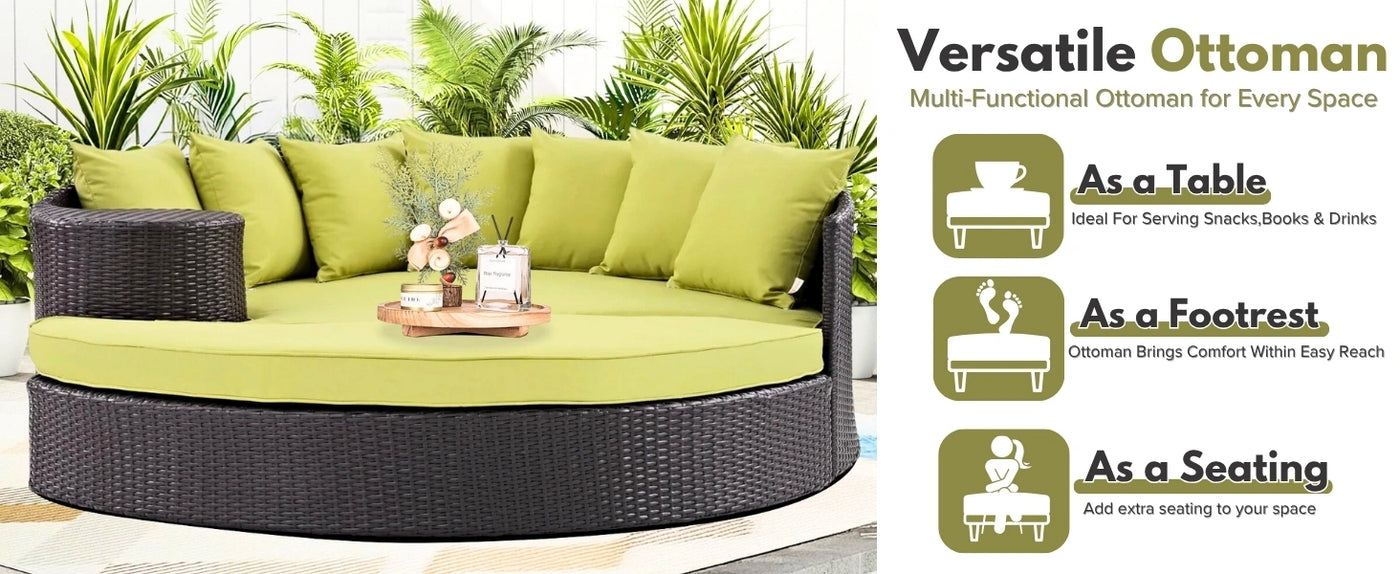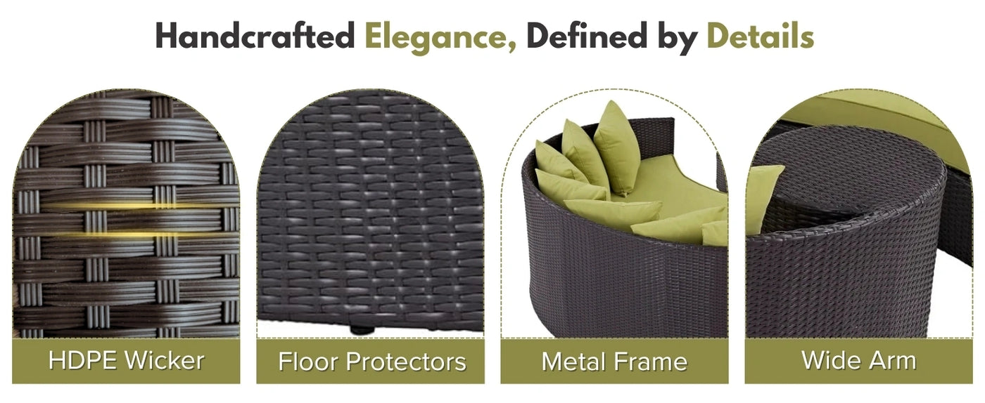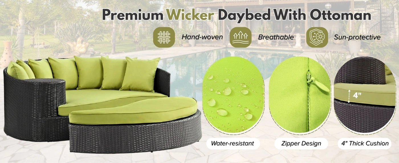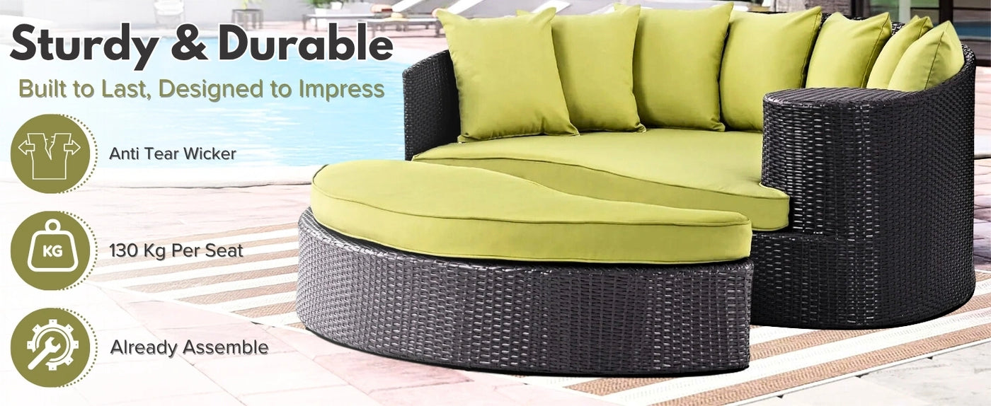 Outdoor Rattan Wicker Daybed (Dark Brown & Green)