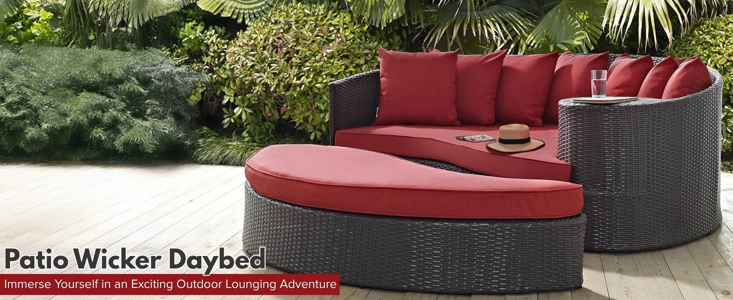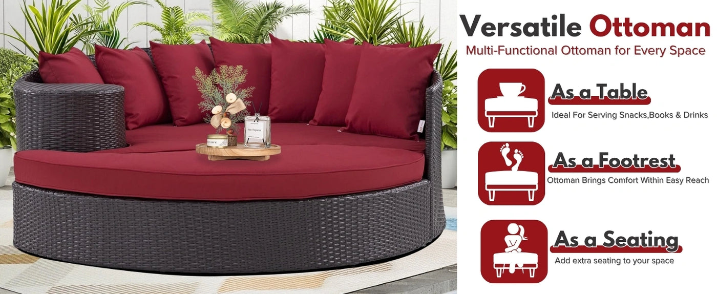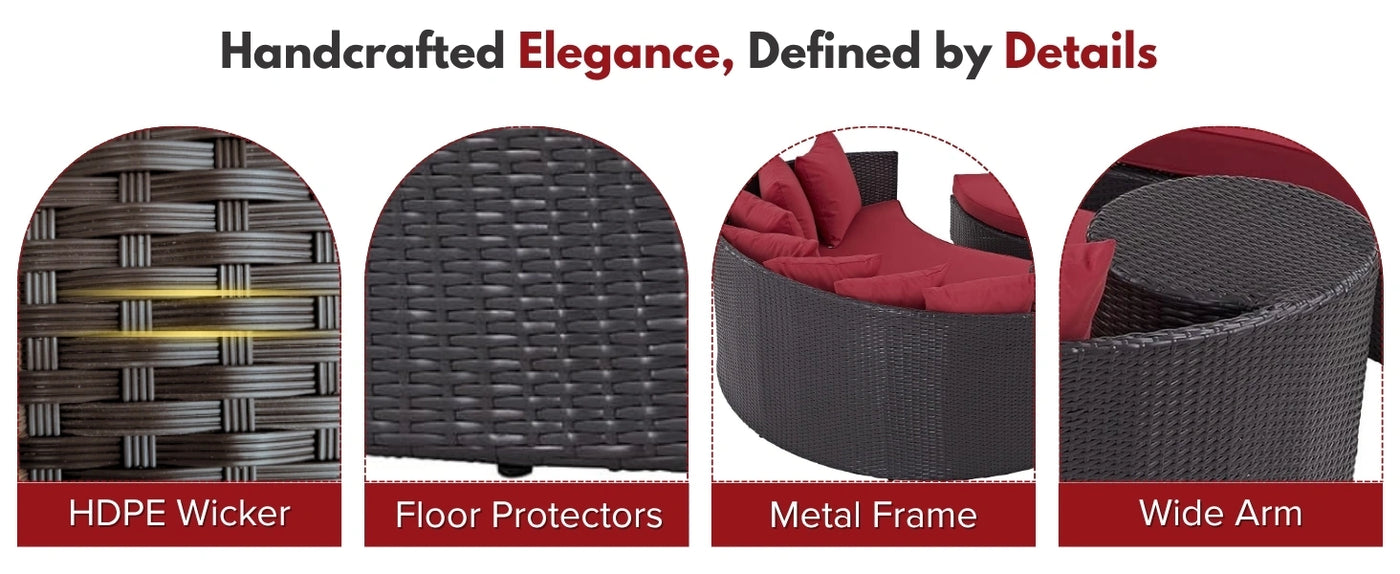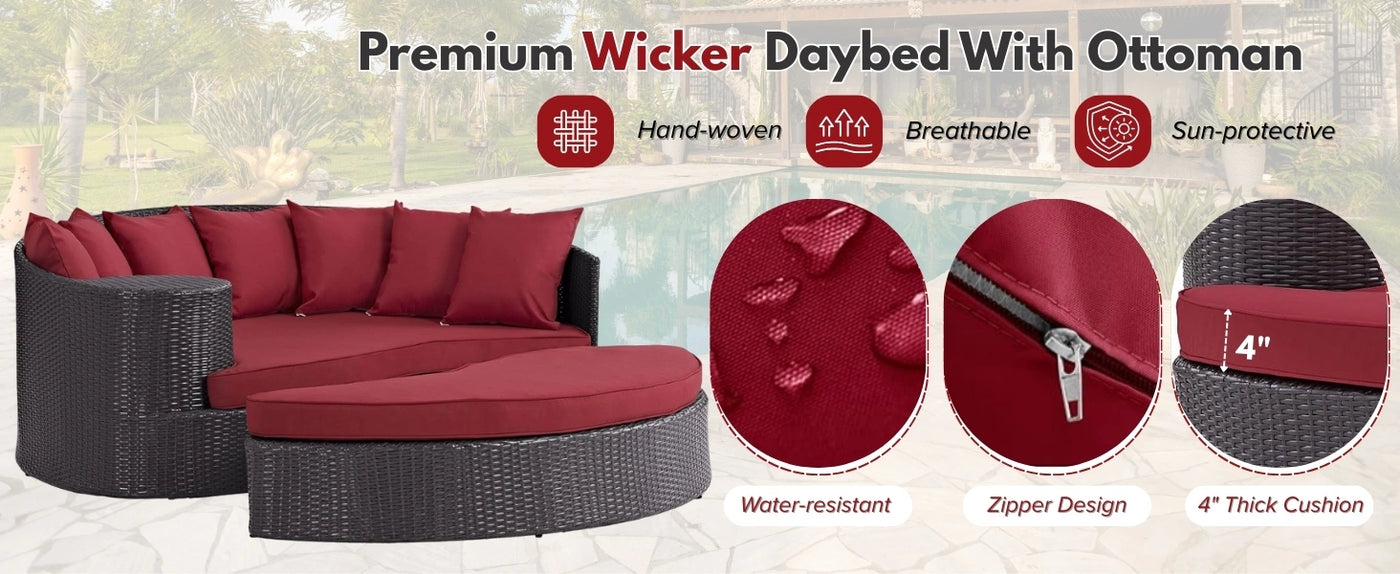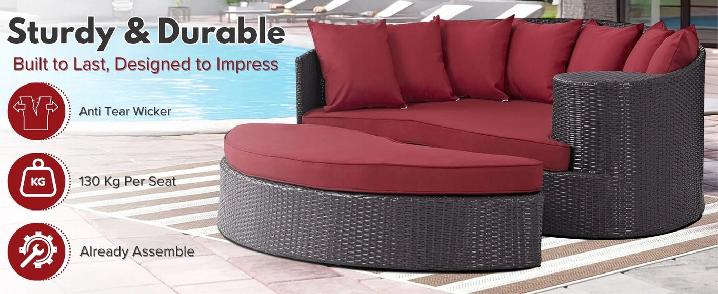 Outdoor Rattan Wicker Daybed (Dark Brown & Red)