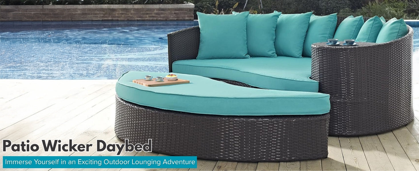 Outdoor Rattan Wicker Daybed (Dark Brown & Turquoise Blue) is backordered and will ship as soon as it is back in stock.