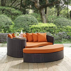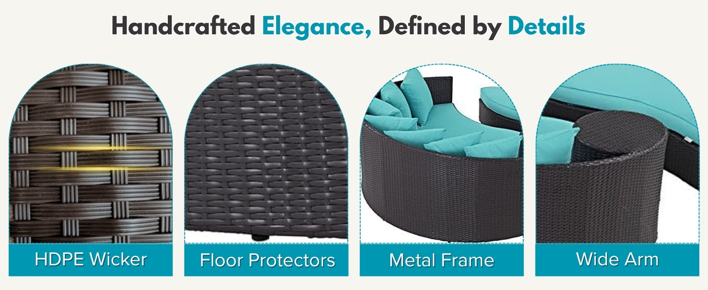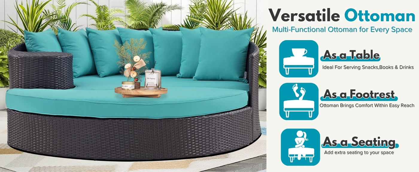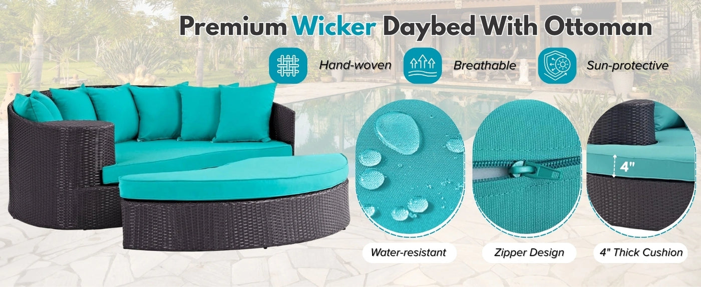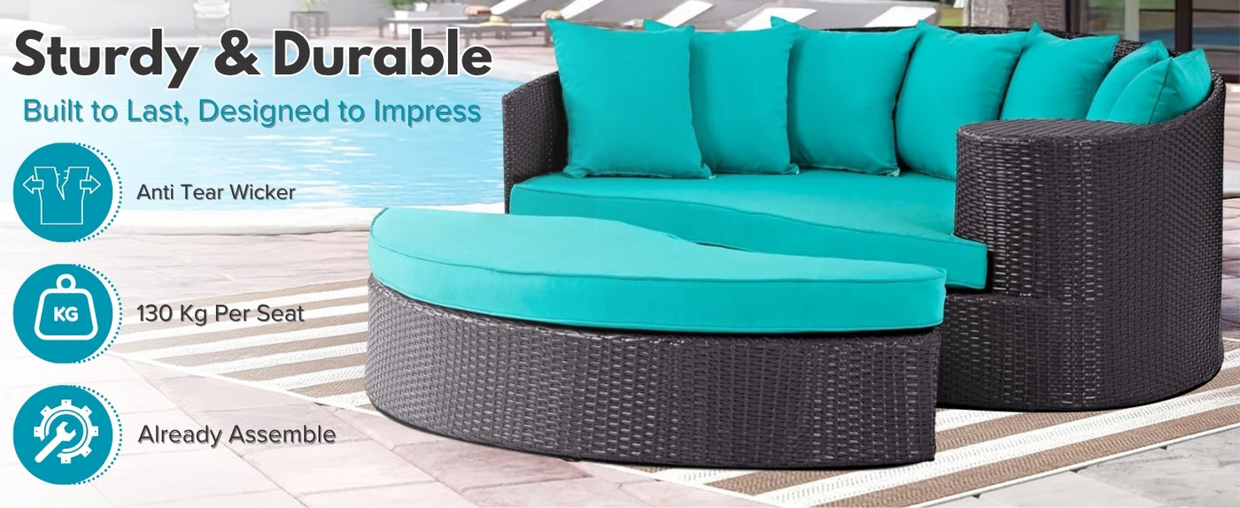 Outdoor Rattan Wicker Daybed (Dark Brown & Turquoise Blue)