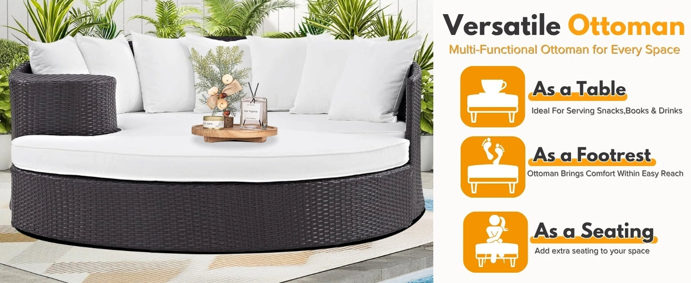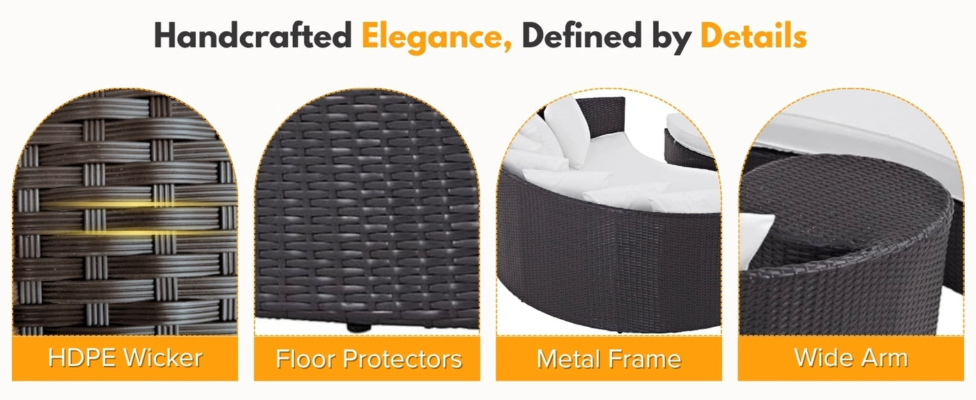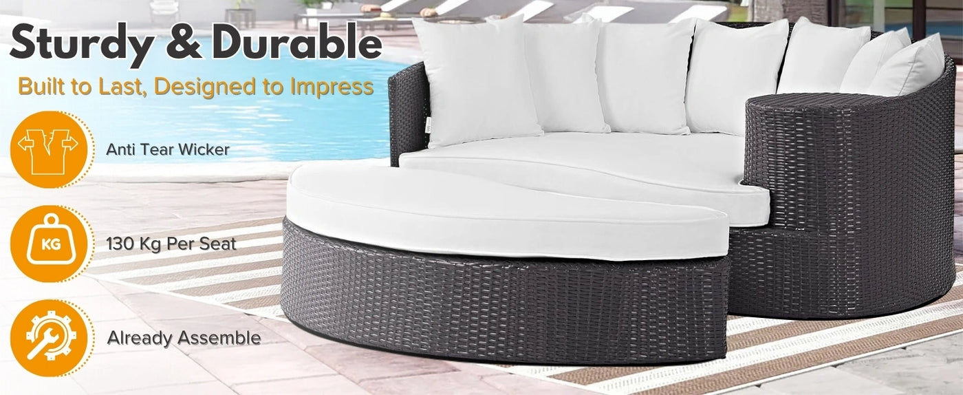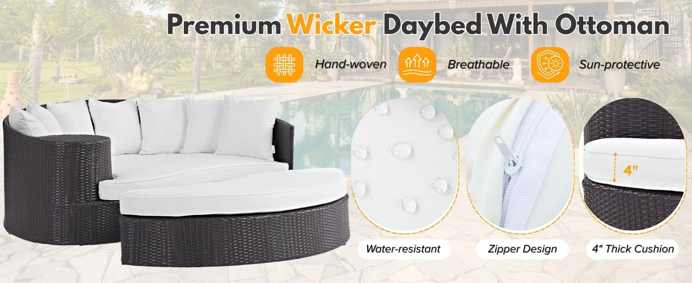 Outdoor Rattan Wicker Daybed (Dark Brown & White)