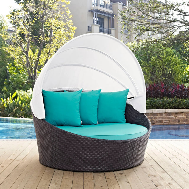 Outdoor Rattan Wicker Patio Daybed with Retractable Canopy