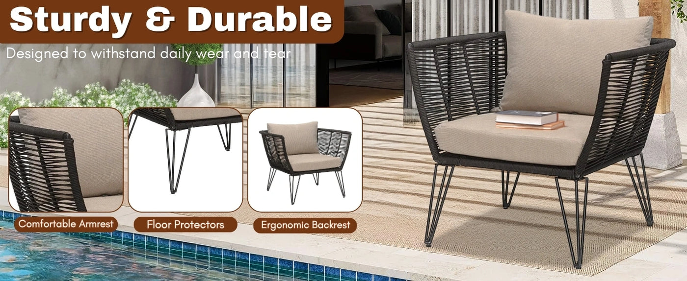 1. Rope Furniture - Clean with mild soap and water, avoid excess moisture, and cover when not in use to prevent wear from sun and rain.