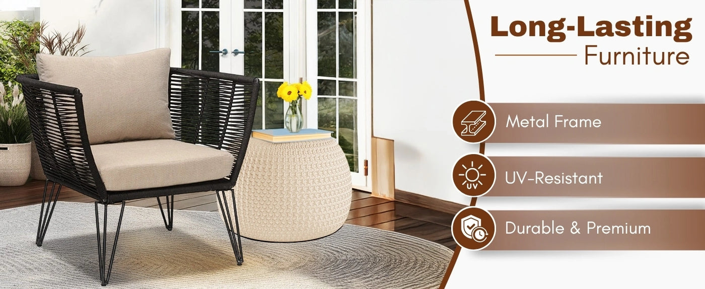 Outdoor Rope 1 Piece Patio Single Seater Sofa