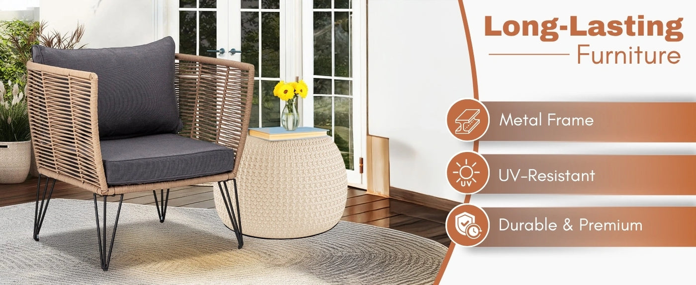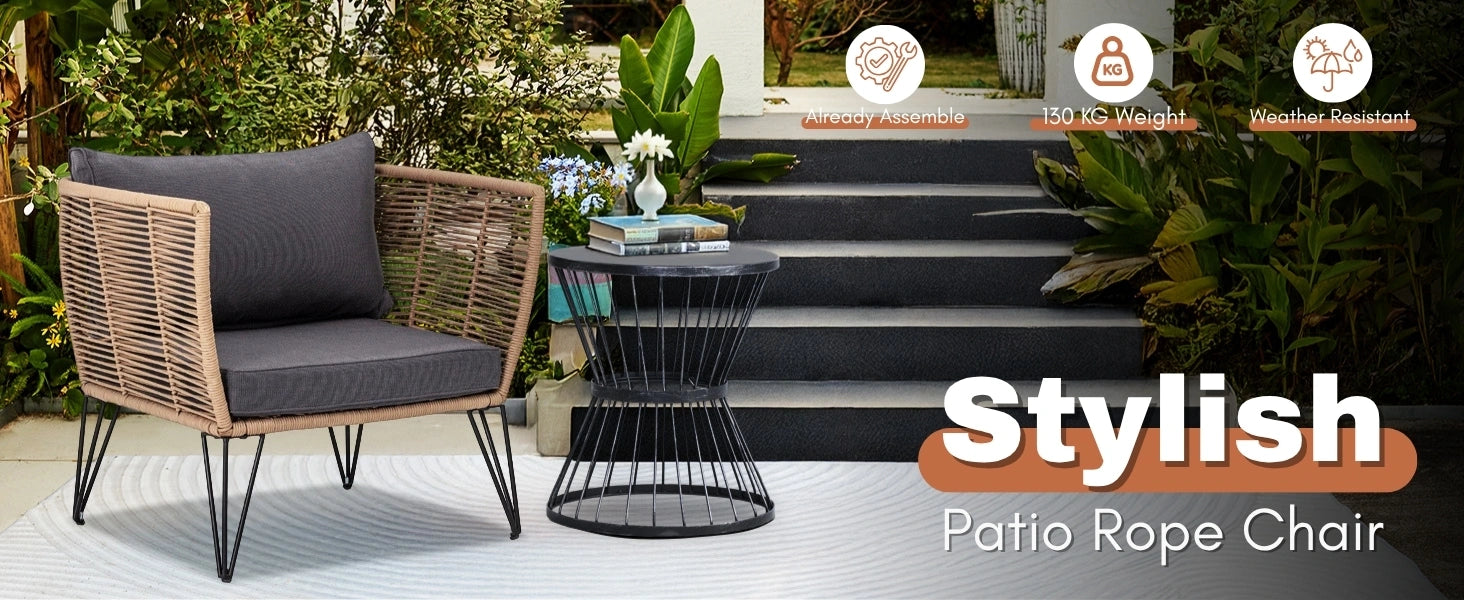 Outdoor Rope 1 Piece Patio Single Seater Sofa