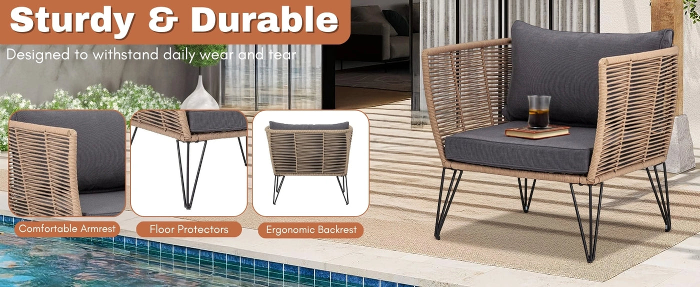 1. Rope Furniture - Clean with mild soap and water, avoid excess moisture, and cover when not in use to prevent wear from sun and rain.