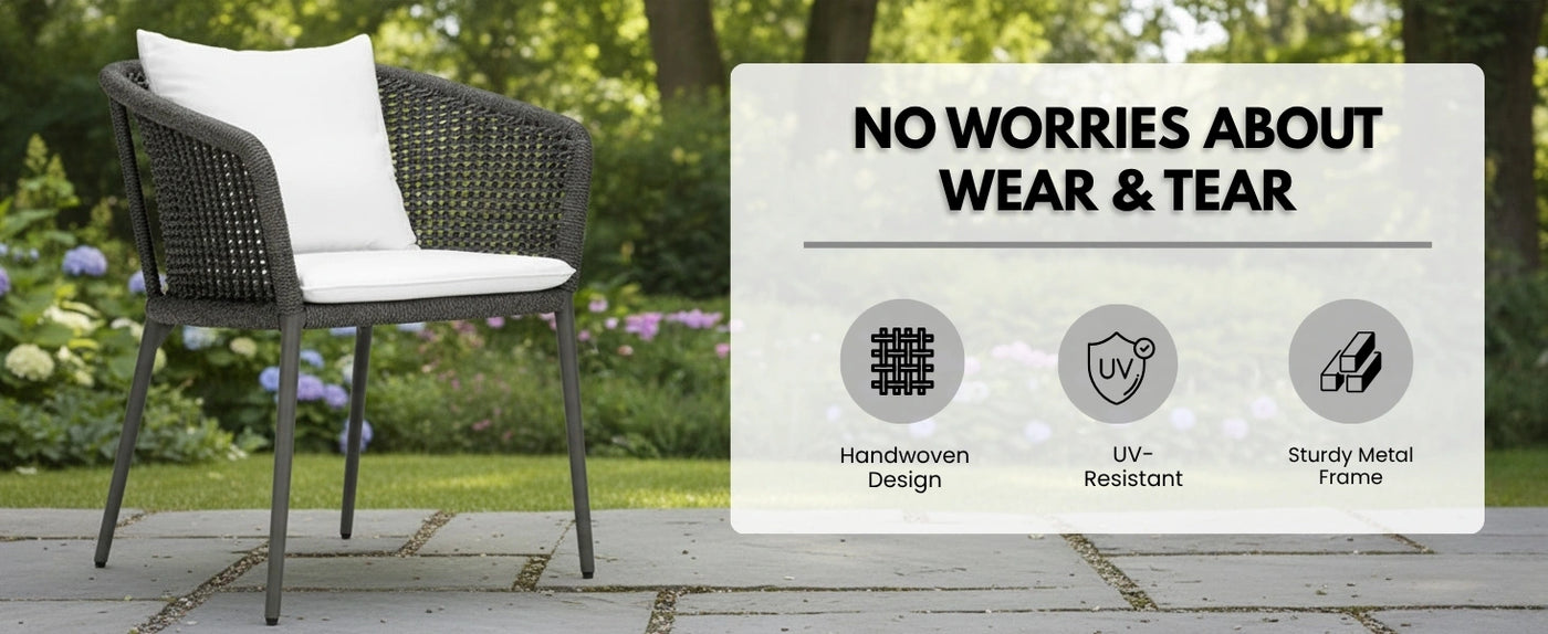 1. Rope Furniture - Clean with mild soap and water, avoid excess moisture, and cover when not in use to prevent wear from sun and rain.