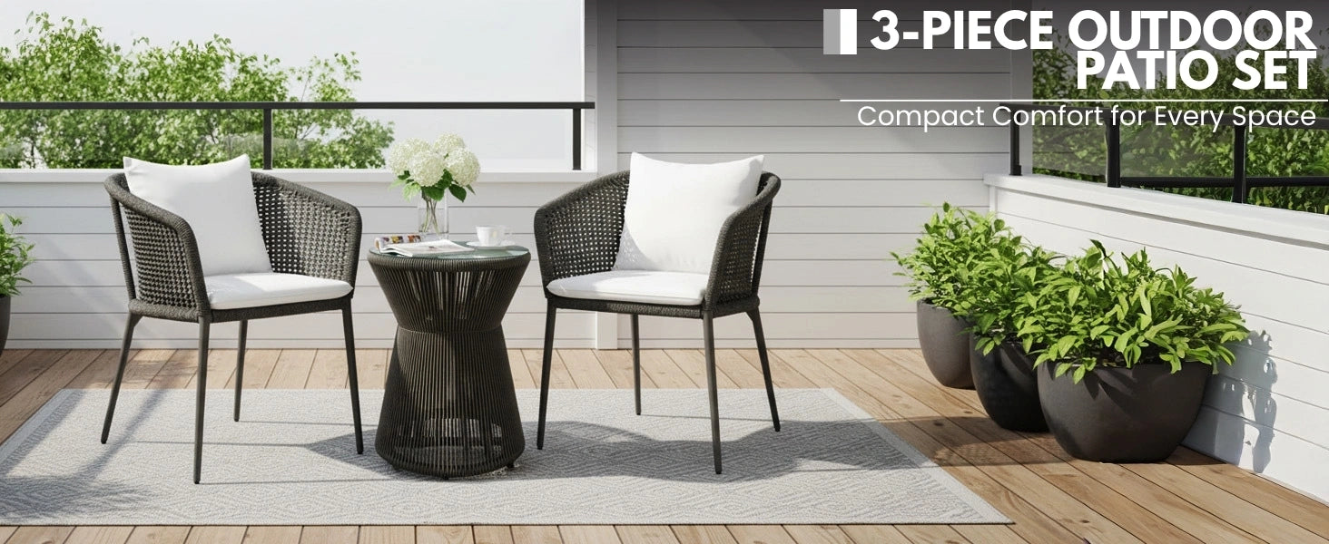 Outdoor Rope 3-Piece Patio Set is backordered and will ship as soon as it is back in stock.
