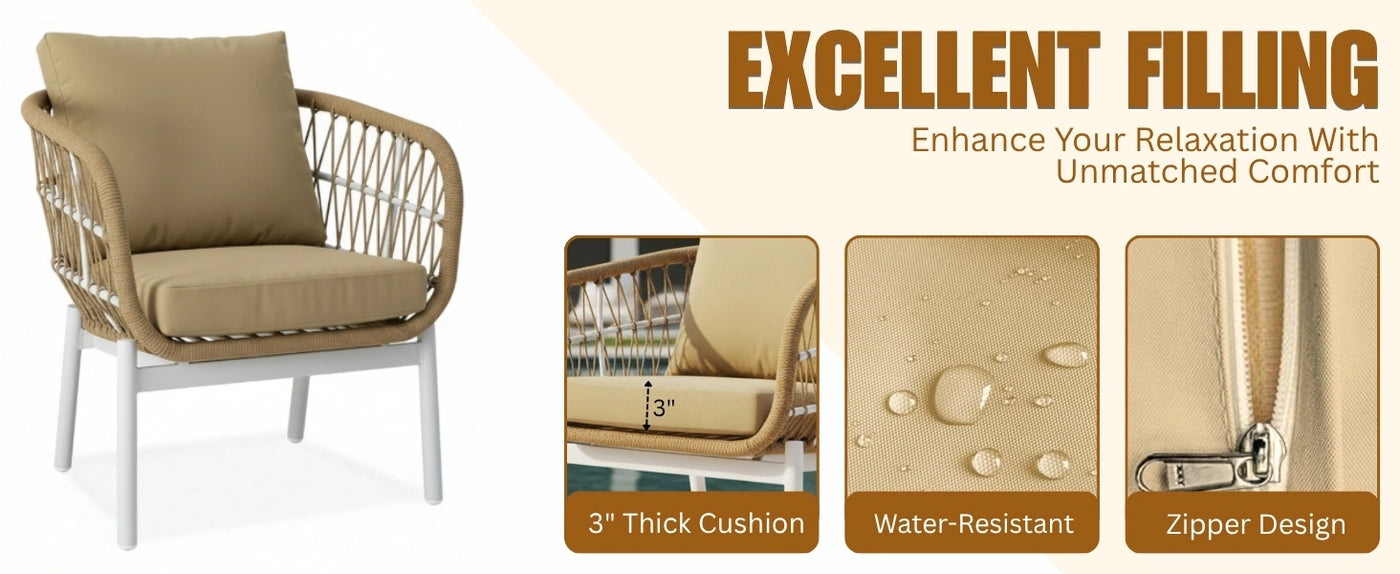 Outdoor Rope 3-Piece Patio Set (Beige & Dark Cream)