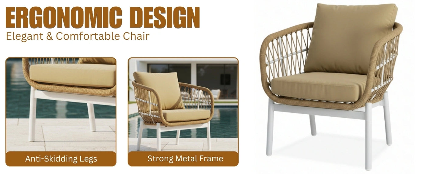 - Durable & Weather-Resistant Build : Crafted with a strong powder-coated frame and all-weather rope material, this set resists rust, UV rays, and outdoor wear for year-round use.