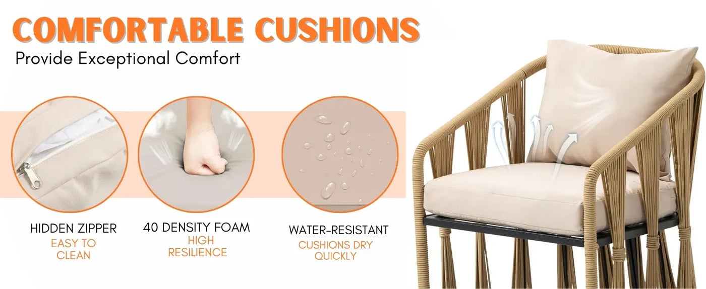 • Comfortable Cushioned Seating : Includes plush, water-resistant seat cushions in a soothing cream tone, providing both style and cloud-like comfort.