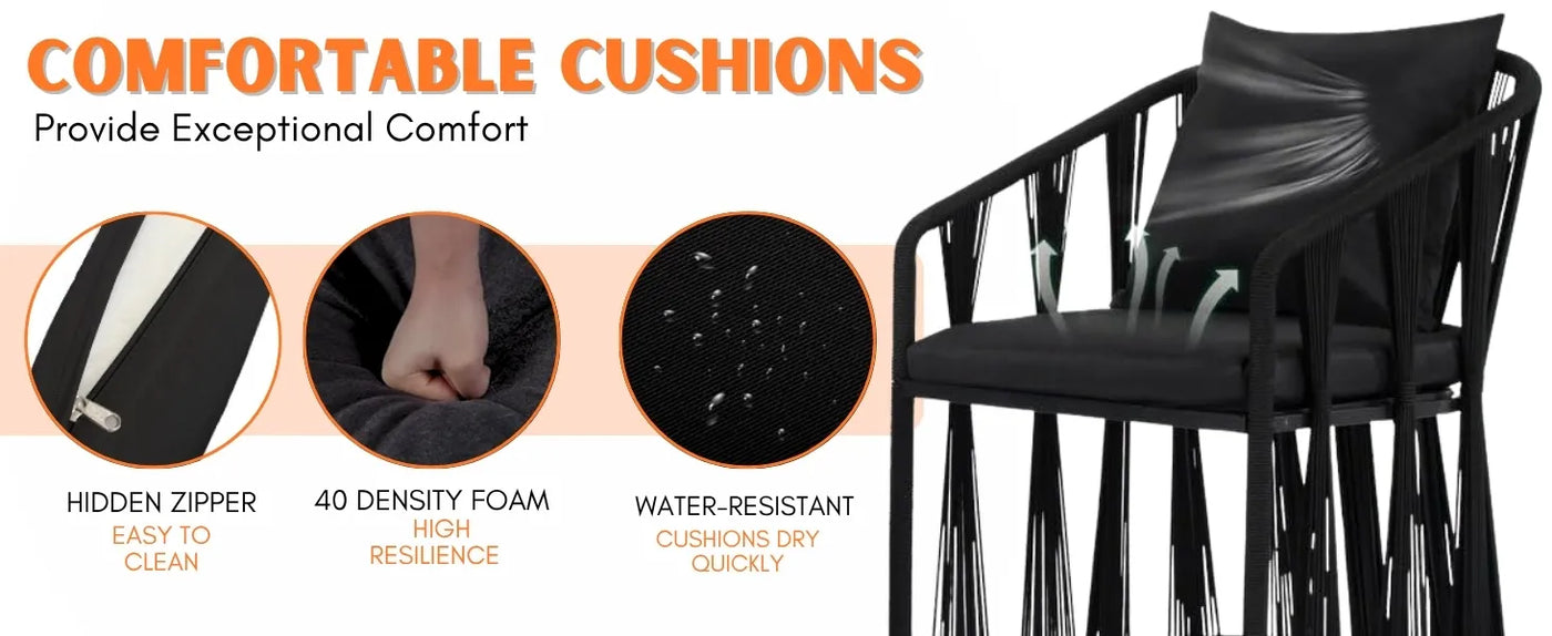 • Comfortable Cushioned Seating : Includes plush, water-resistant seat cushions in a soothing cream tone, providing both style and cloud-like comfort.