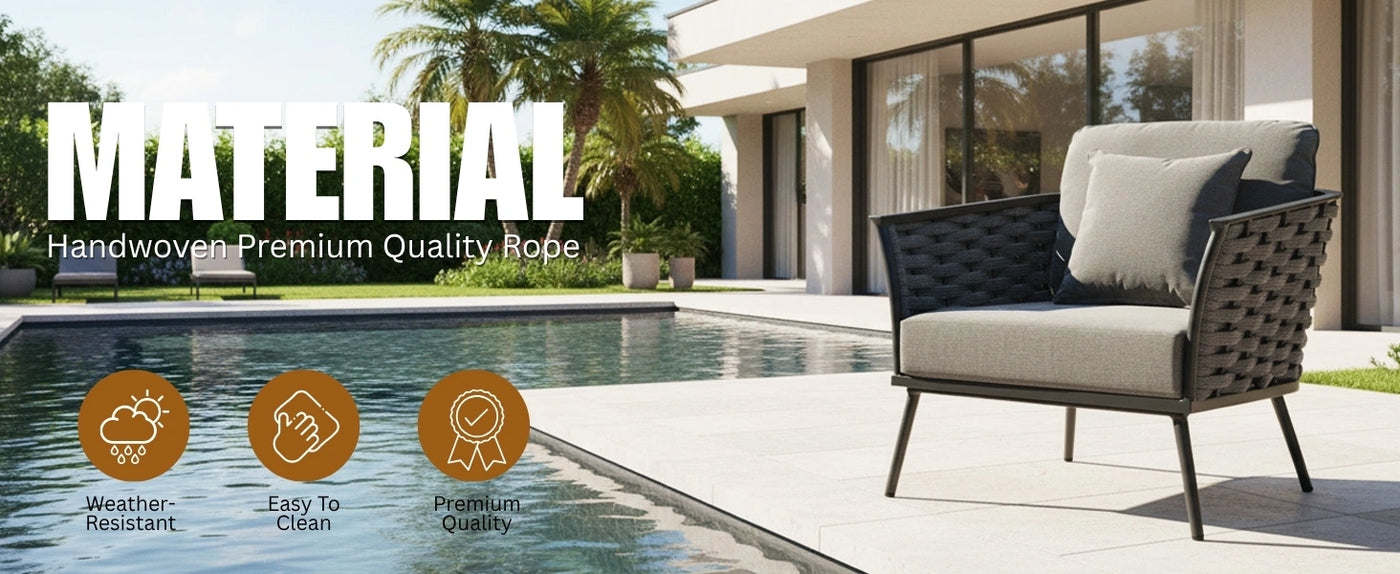 1. Rope Furniture - Clean with mild soap and water, avoid excess moisture, and cover when not in use to prevent wear from sun and rain.