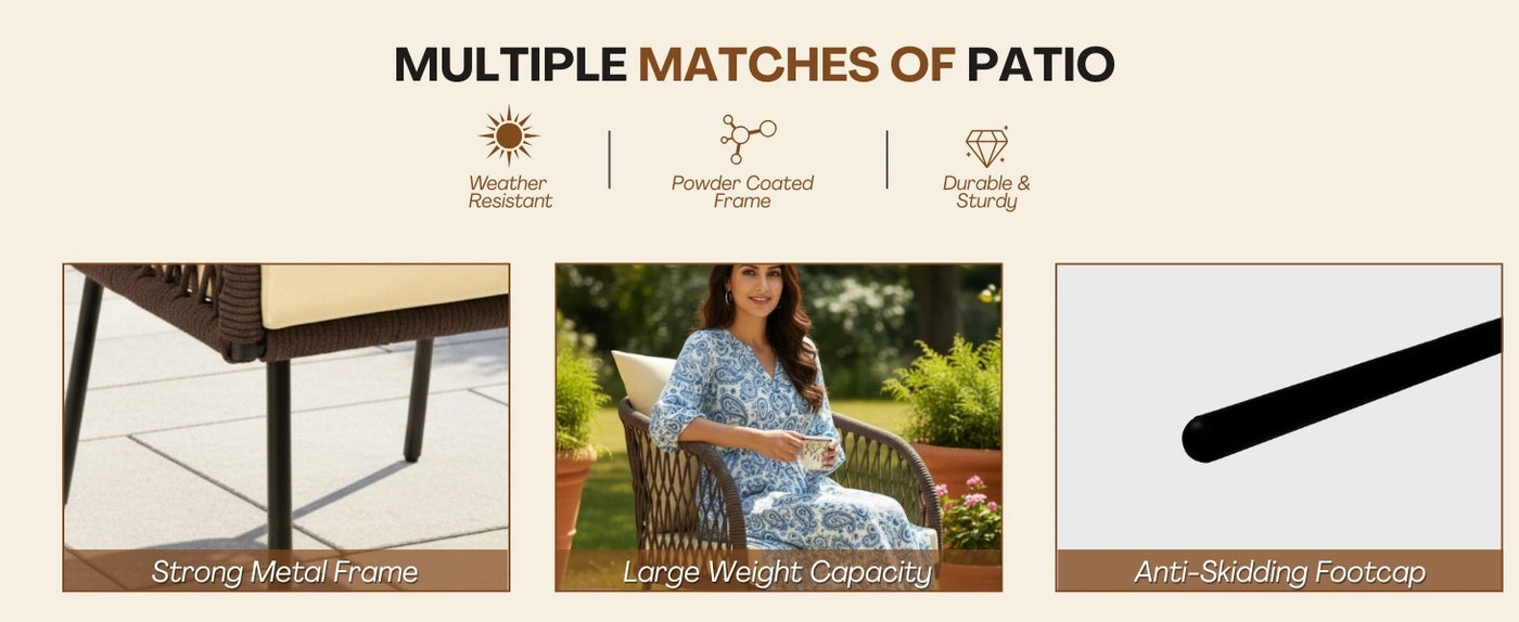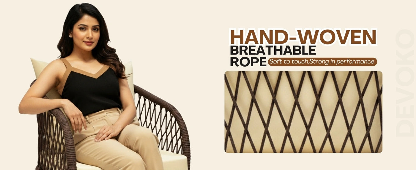 - Breathable Rope Weaving: Premium breathable rope design provides ergonomic support and modern elegance. UV-resistant and weather-friendly for long-lasting outdoor use.