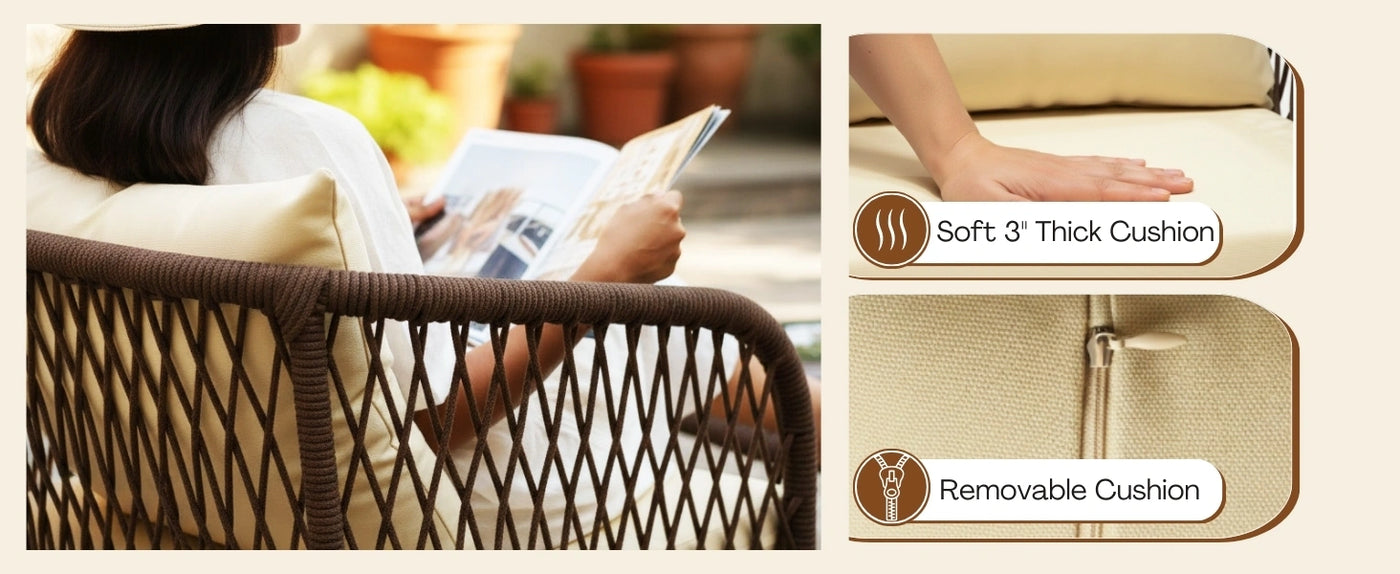 - Comfortable Water-Repellent Cushions: Soft, thick cushions with water-repellent ensure all-weather comfort. Easy to clean and quick-dry, perfect for daily outdoor relaxation.