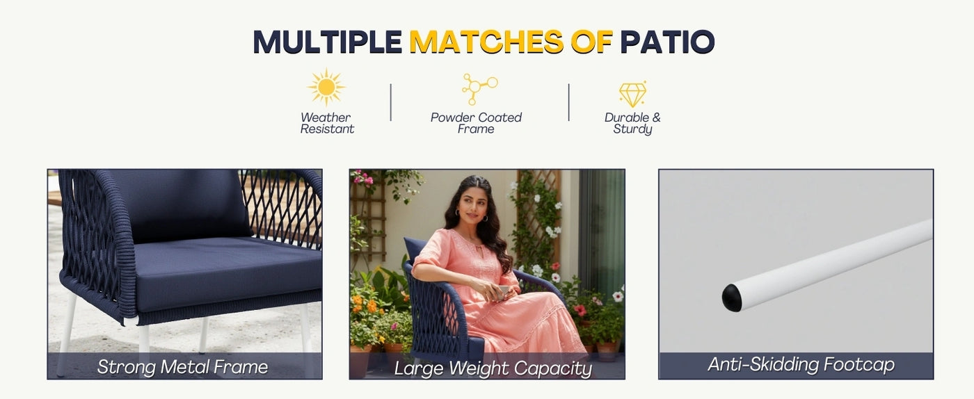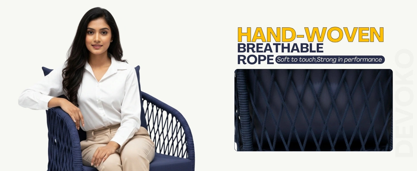 - Breathable Rope Weaving: Premium breathable rope design provides ergonomic support and modern elegance. UV-resistant and weather-friendly for long-lasting outdoor use.