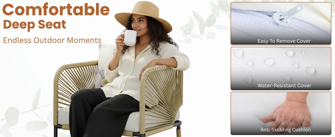 - Indoor-Outdoor Versatility : Lightweight yet sturdy construction makes it easy to reposition or store during off-seasons. Ideal for balconies, rooftop terraces, garden patios, or poolside lounging.