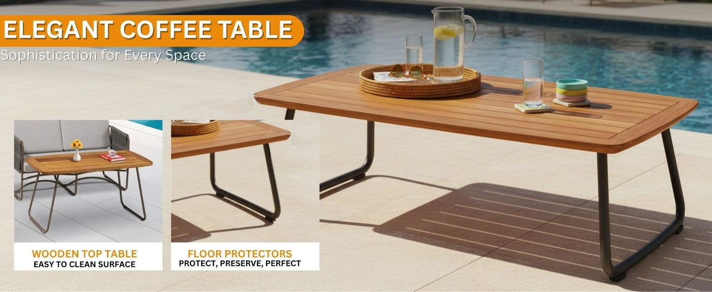 • Elegant & Modern Design : The clean-lined rope weaving, complemented by the sleek wooden top coffee table, adds a contemporary aesthetic to outdoor spaces. The neutral tones make it adaptable to both modern and traditional outdoor décors.