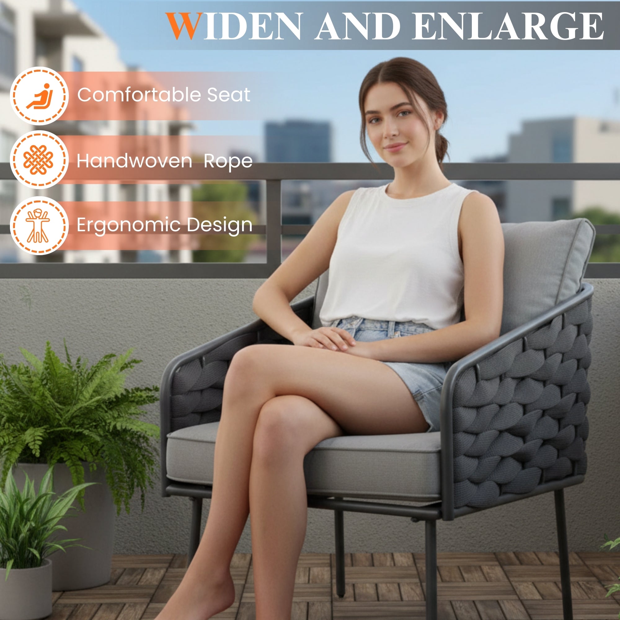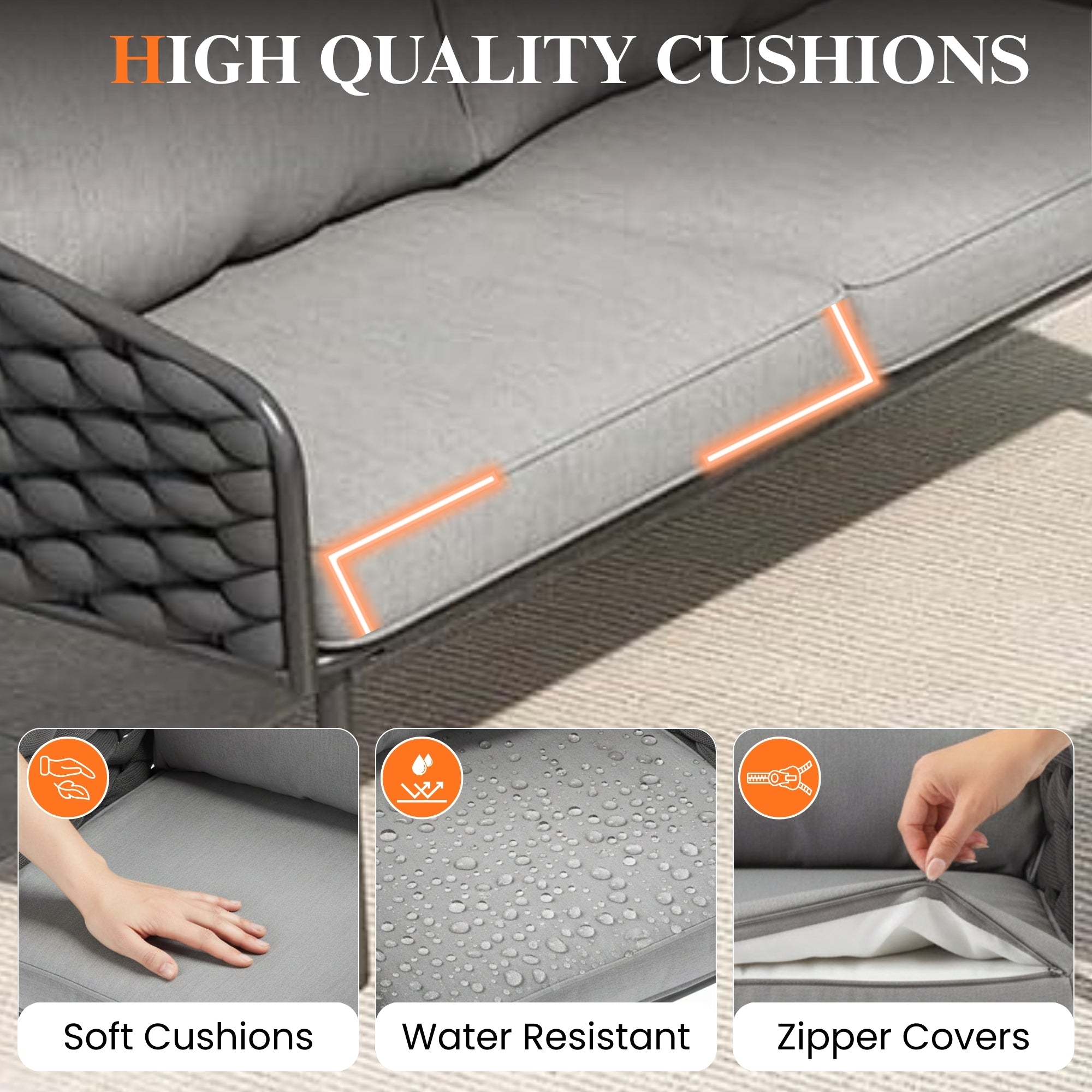 - Premium Handwoven Outdoor Rope Design : Crafted with high-quality, UV-resistant outdoor rope, this sofa set offers a modern look with excellent durability for gardens, balconies, patios, and terraces.