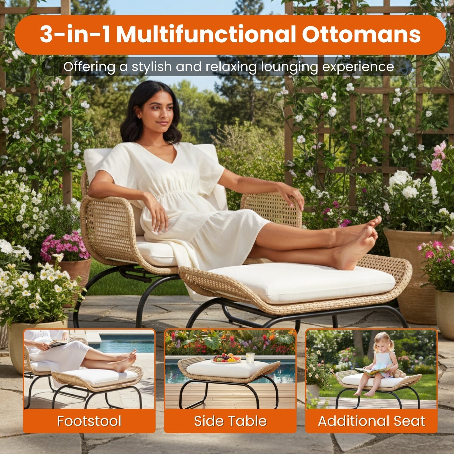 - Matching Footrest for Extra Relaxation : Includes a versatile footrest that enhances comfort and can also be used as additional seating when needed.