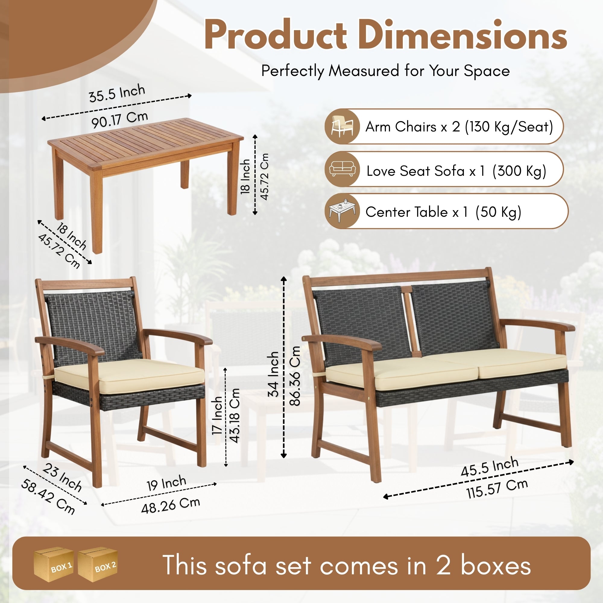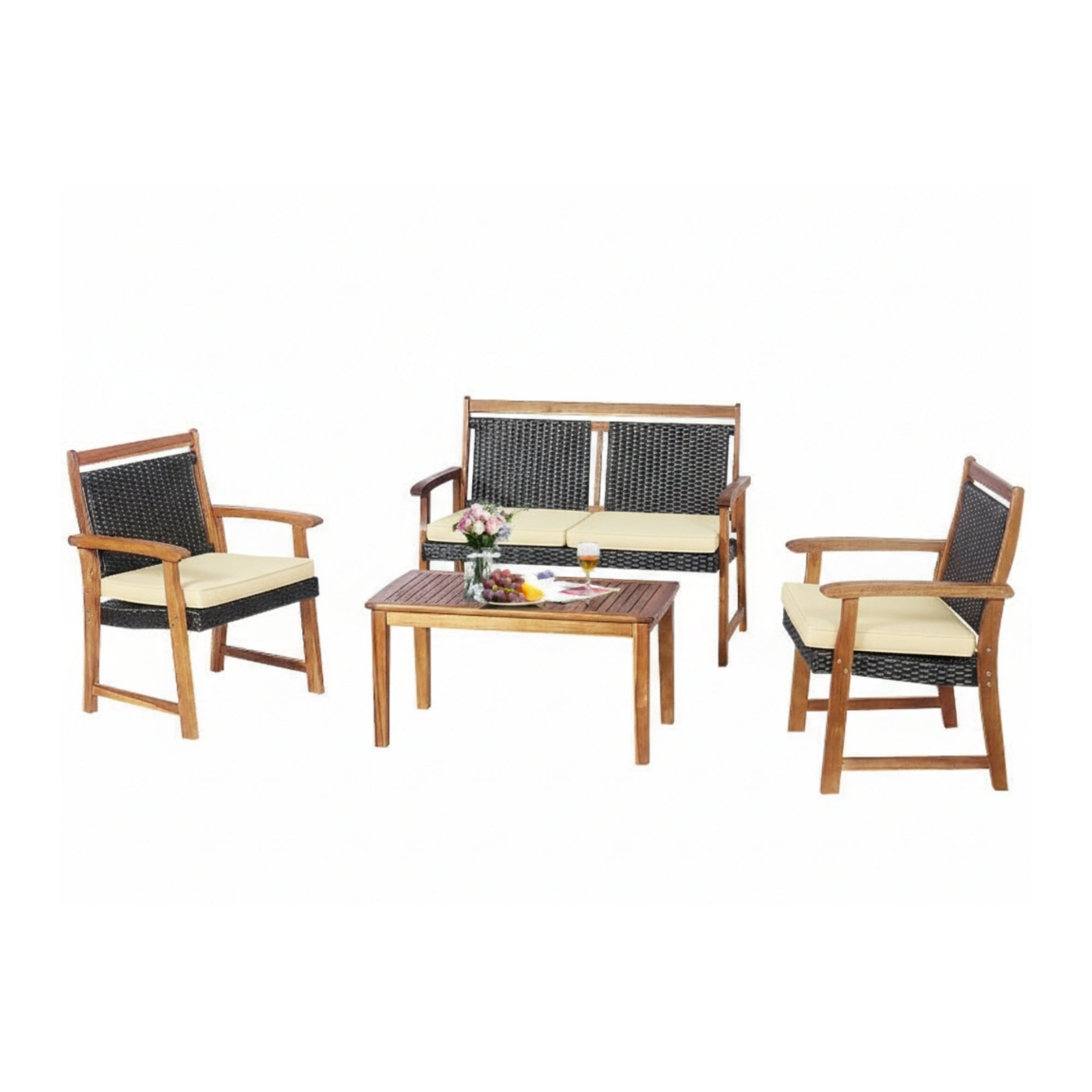 Outdoor Wicker 4-Piece Sofa Set with Solid Sheesham Wood Frames