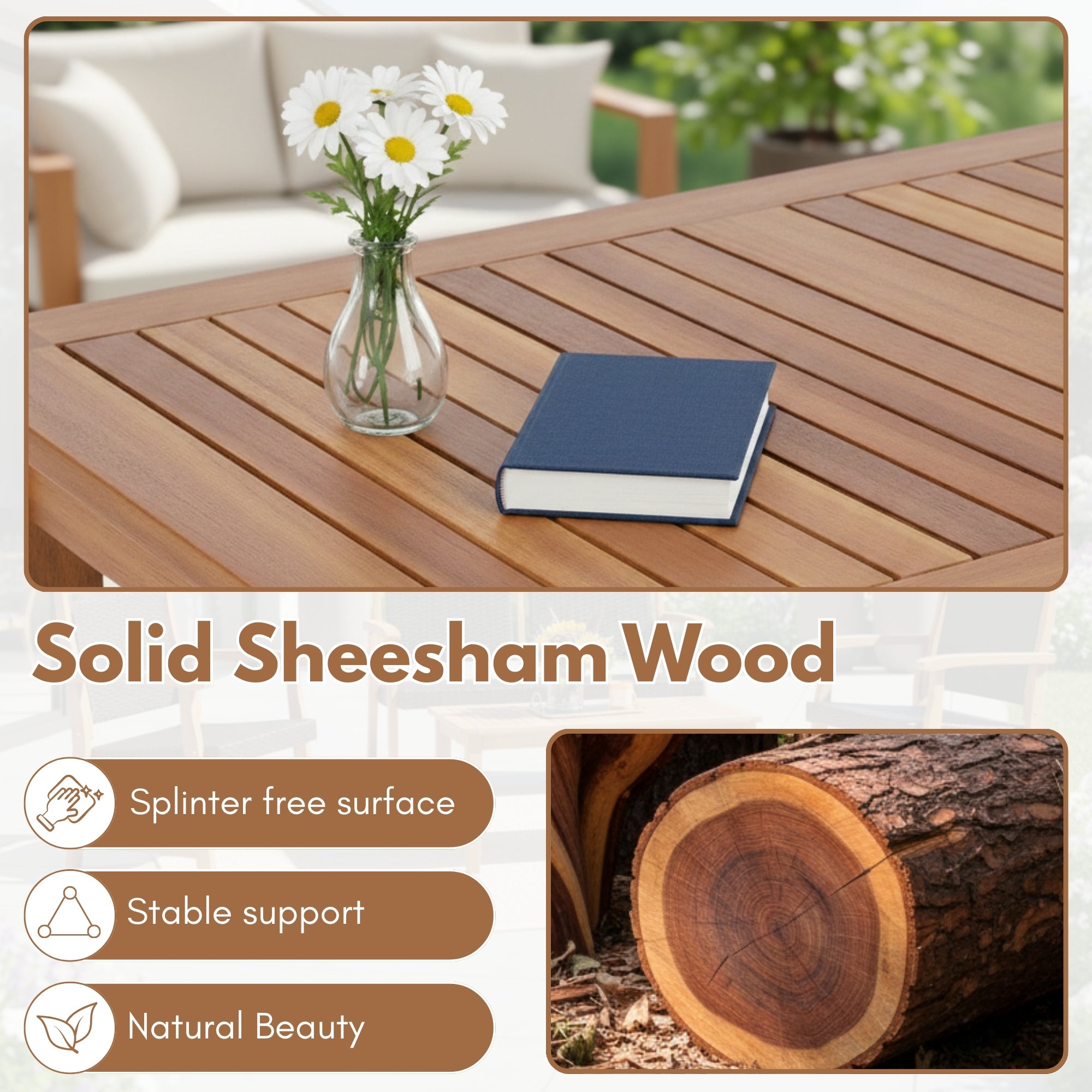- Solid Sheesham Wood Frame : Crafted with premium-quality solid wood, the frame offers exceptional strength, durability, and natural resistance to wear. The sturdy construction ensures long-lasting performance while adding a rich, elegant wooden finish to your outdoor space.