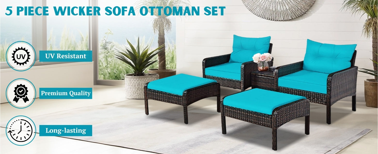 Outdoor Wicker 5-Piece Patio Sofa Set