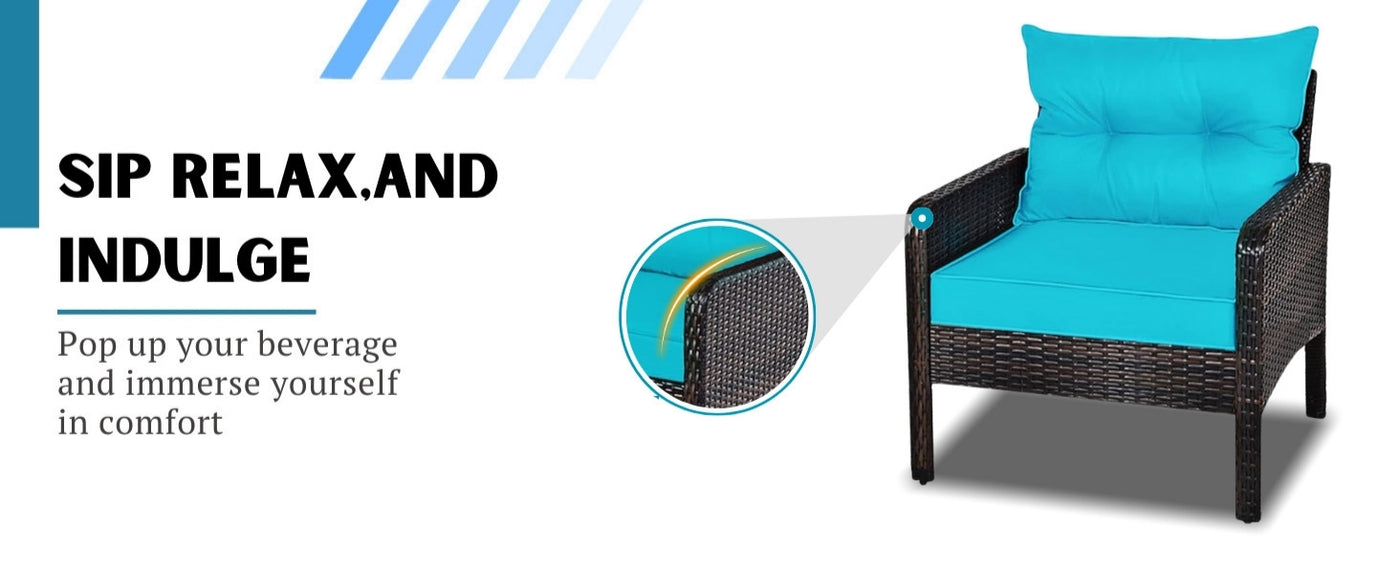 - Compact & Space-Saving : Ideal for balconies or smaller patios, the ottomans can be tucked neatly under the chairs when not in use, keeping your space tidy and functional.