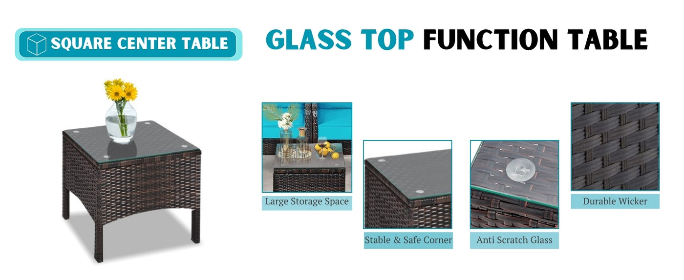 - Stylish Glass-Top Coffee Table : The sleek, glass-top table adds a touch of elegance while providing a sturdy surface for snacks, drinks, or decor.