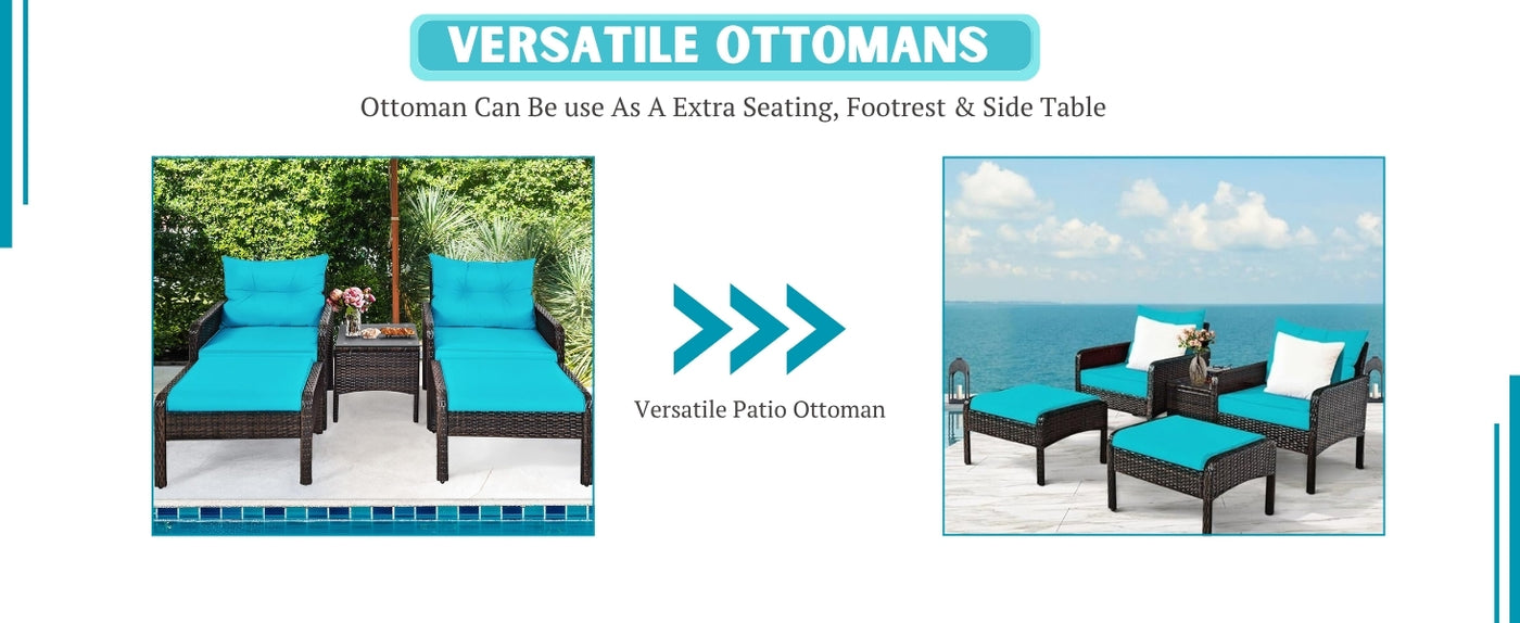 - Versatile Modular Design : Mix and match the ottomans and chairs to suit your space use as footrests, extra seats, or even side tables for a flexible outdoor experience.